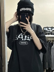 プリントブラックTシャツ夏服スタンダードルーズトップス レトロ 夏物 ボーイズ デーモン74728752782