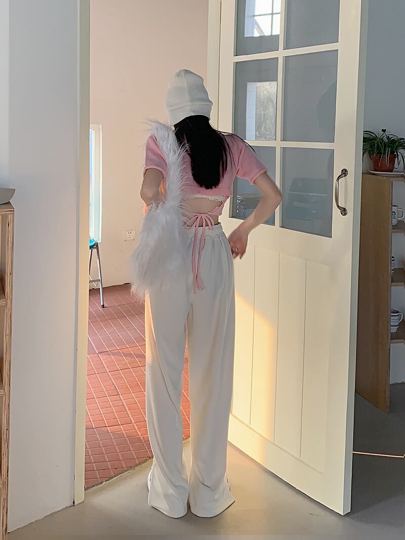 色:アプリコット×レター巾着パンツ,ブラック×レタードローストリングパンツ,ピンク×レタードローストリングパンツ,グレー×レタードローストリングパンツ