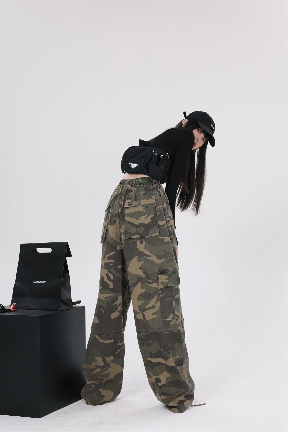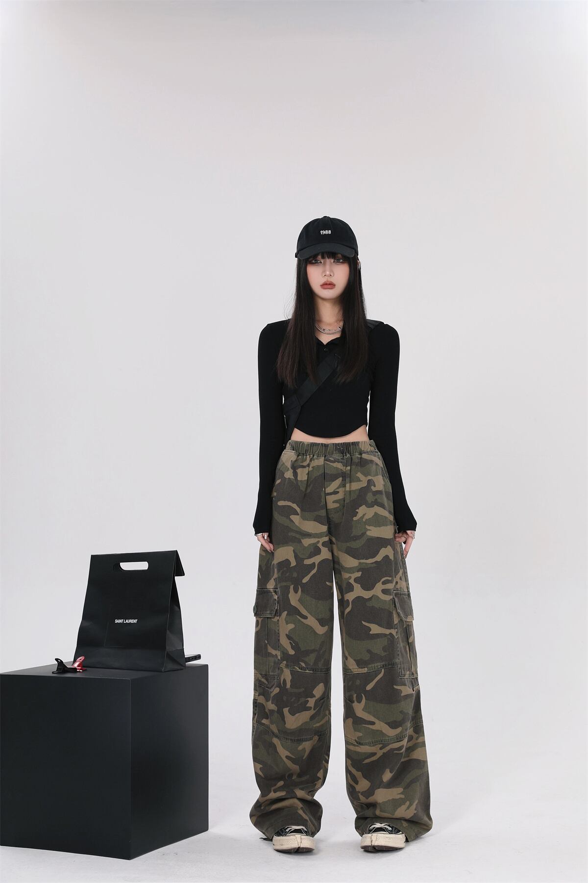 迷彩柄カジュアルパンツ 夏服ハイウェストルーズ薄手 夏物 ウエスト デーモン63521099239