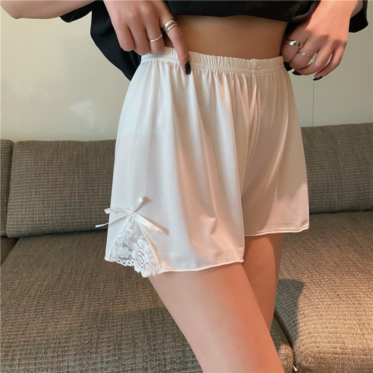 ホワイトパンツ 夏服薄手ハイウェストウェストレースルーズゆったりショーツ 夏物 シルク ウエスト デーモン93511433403