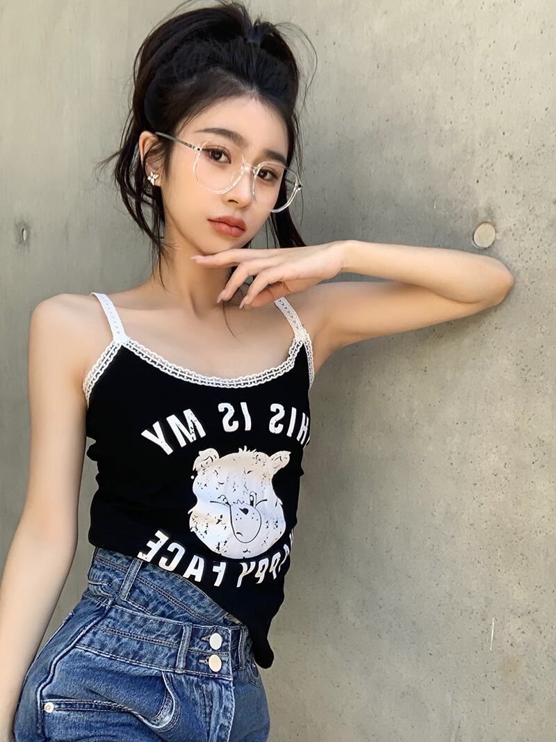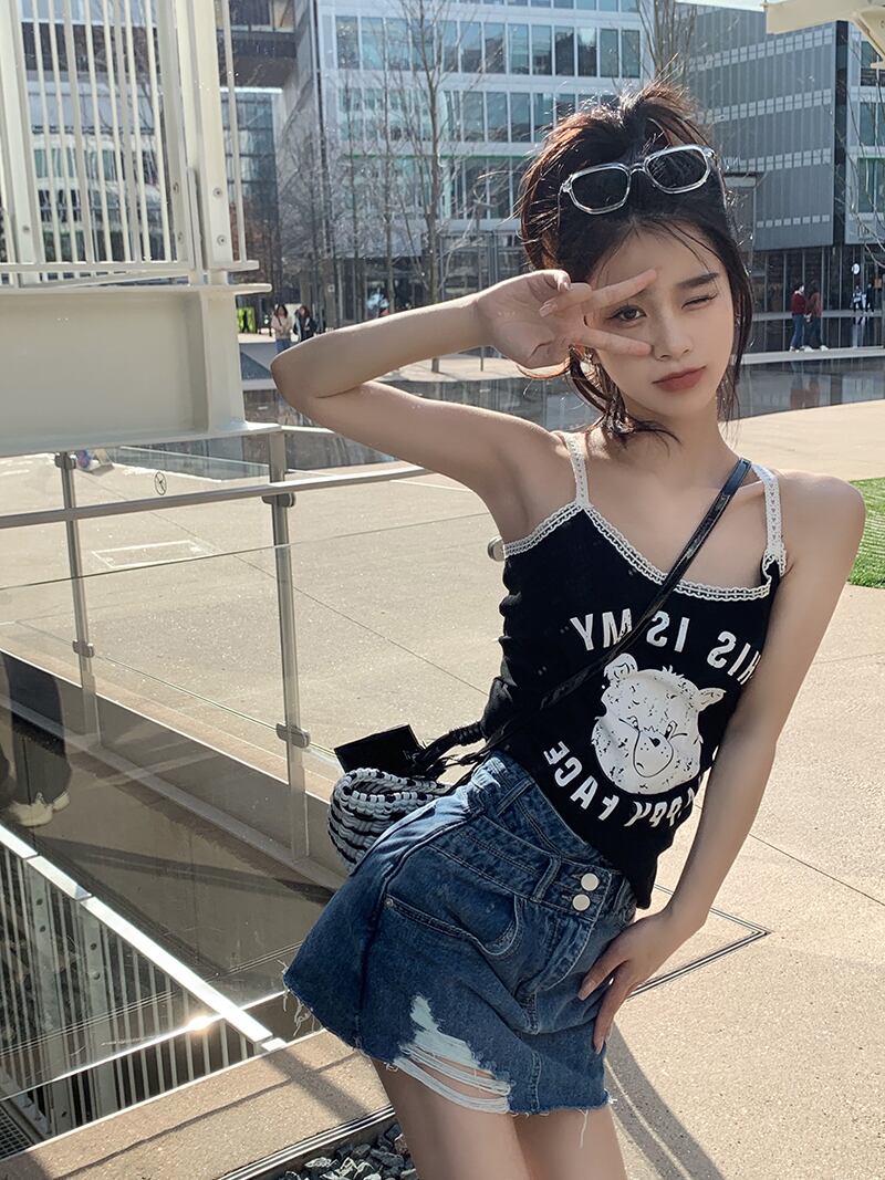 夏服ブラックプリント柄ショートクロップトップ トップス 夏物 NEW デーモン26053682952