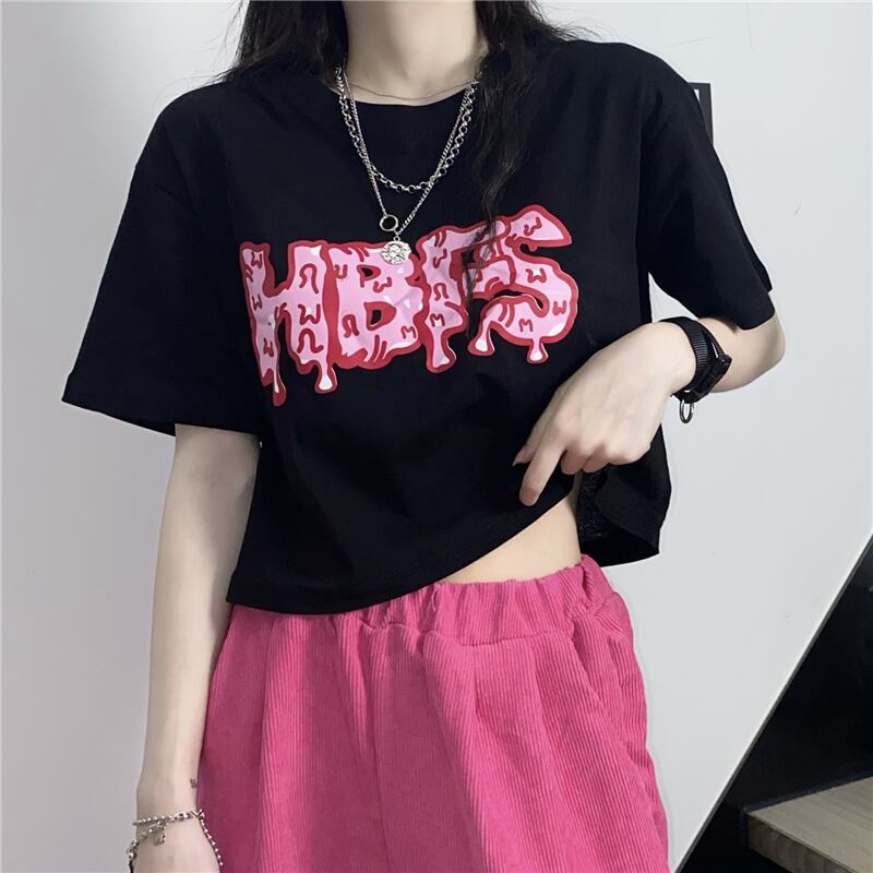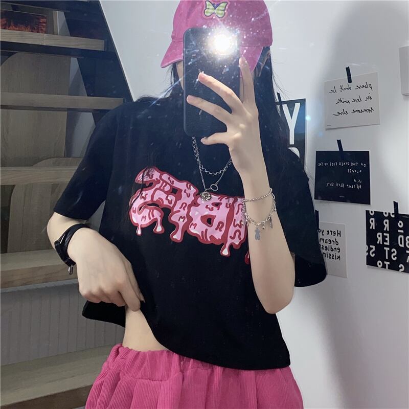 プリント柄ショートTシャツ夏服韓国ファッションルーズトップス 夏物 スタイル デーモン43525557591