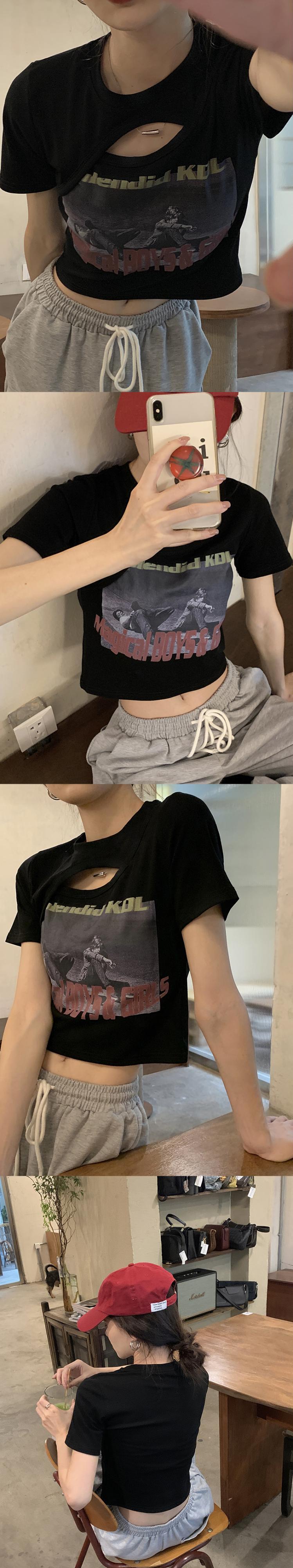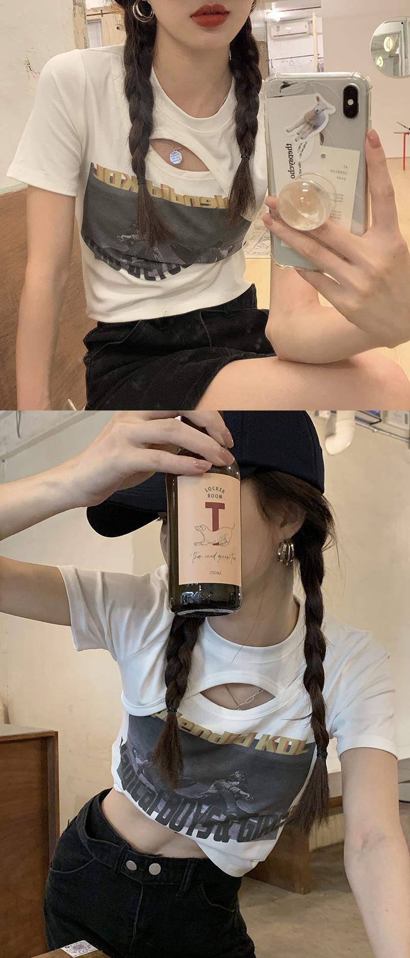 ショートTシャツ夏服スリムフィットクロップドトップス 夏物 デーモン61672578946