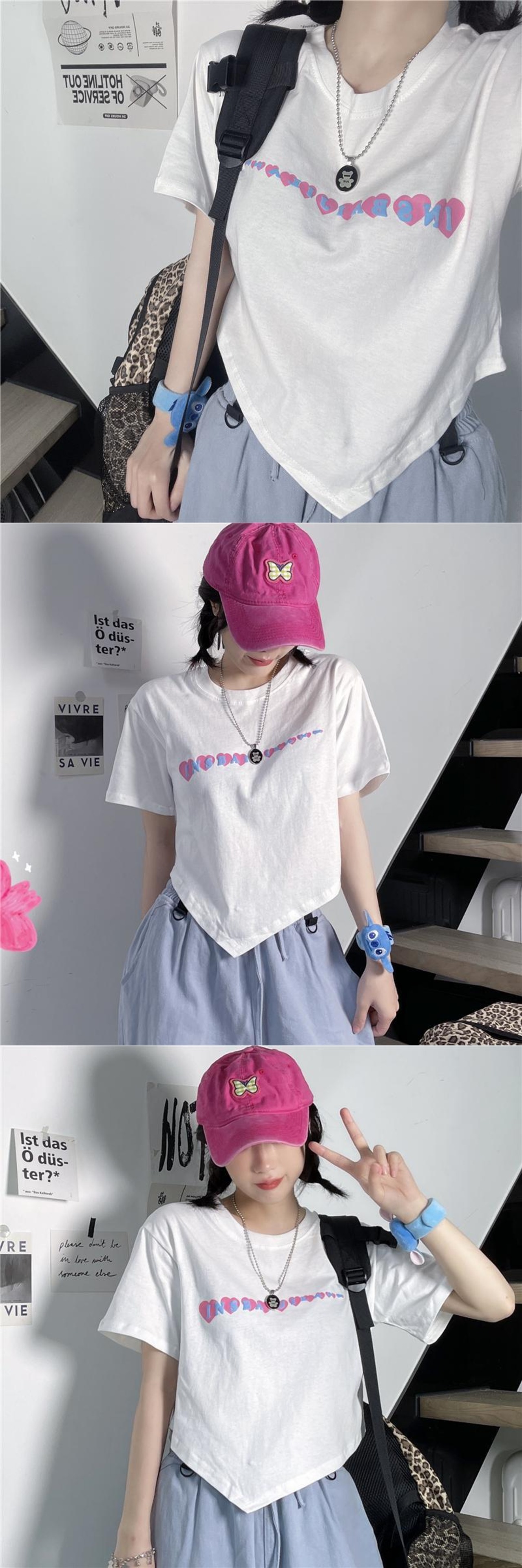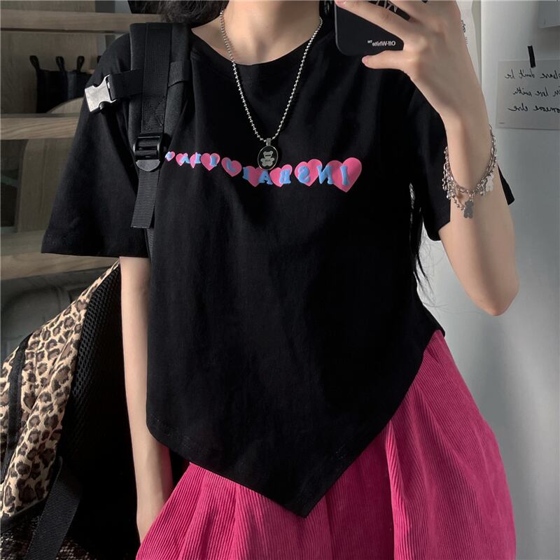 ショートトップス 夏服韓国ファッションルーズプリントTシャツ 夏物 スタイル デーモン68543138409