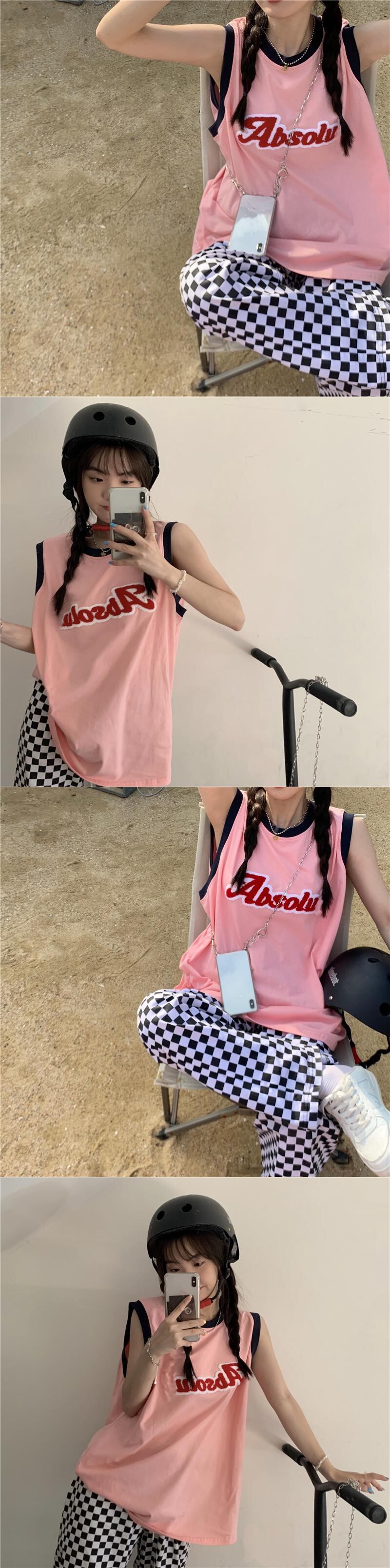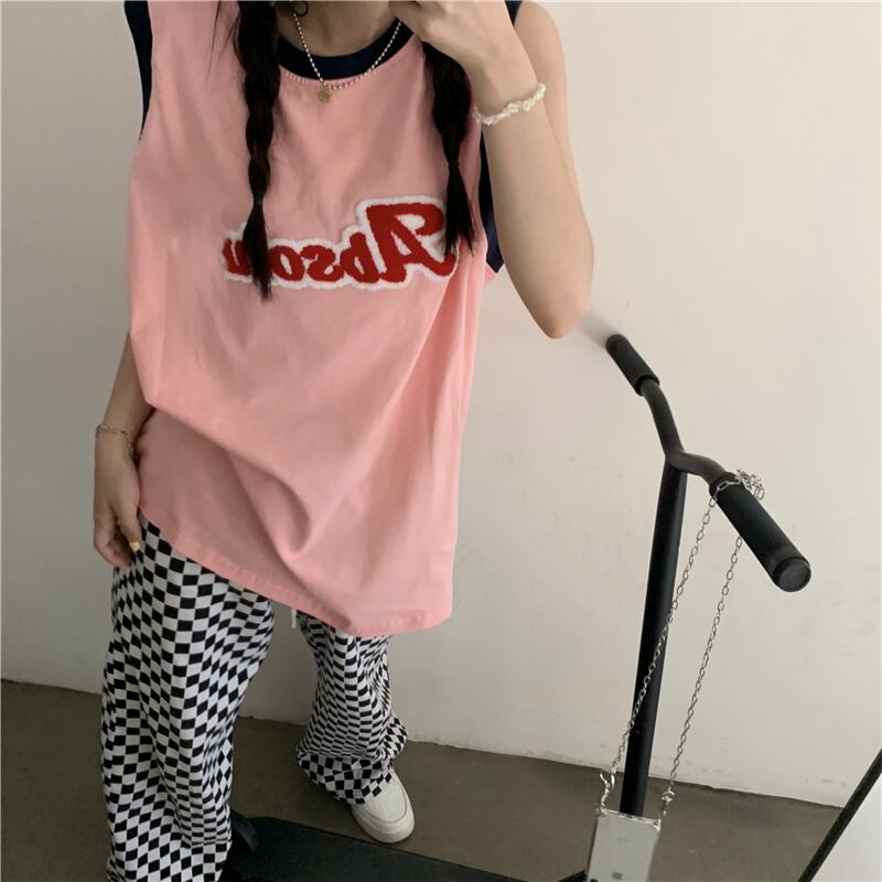夏服ノースリーブスタンダードルーズカジュアルTシャツトップス レッド レトロ 刺繍 夏物 デーモン33754016087