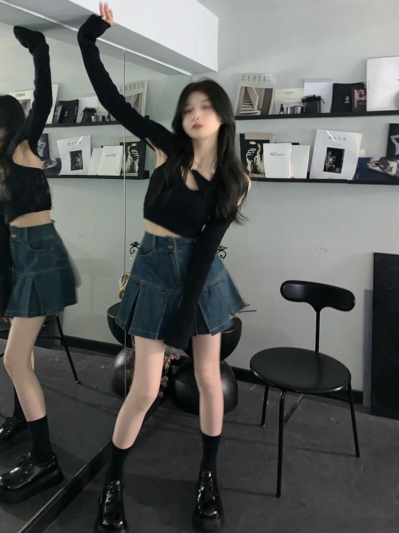 夏服Aラインスカート 韓国ファッションハイウェストウェストプリーツ 夏物 スタイル ウエスト デーモン45704643559