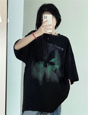 スタイルプリント柄ブラックTシャツ夏服韓国ファッションルーズトップス 原宿 夏物 デーモン79305591577