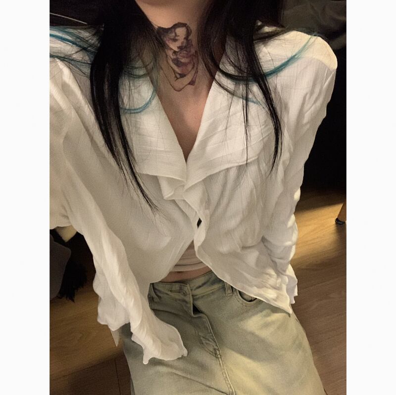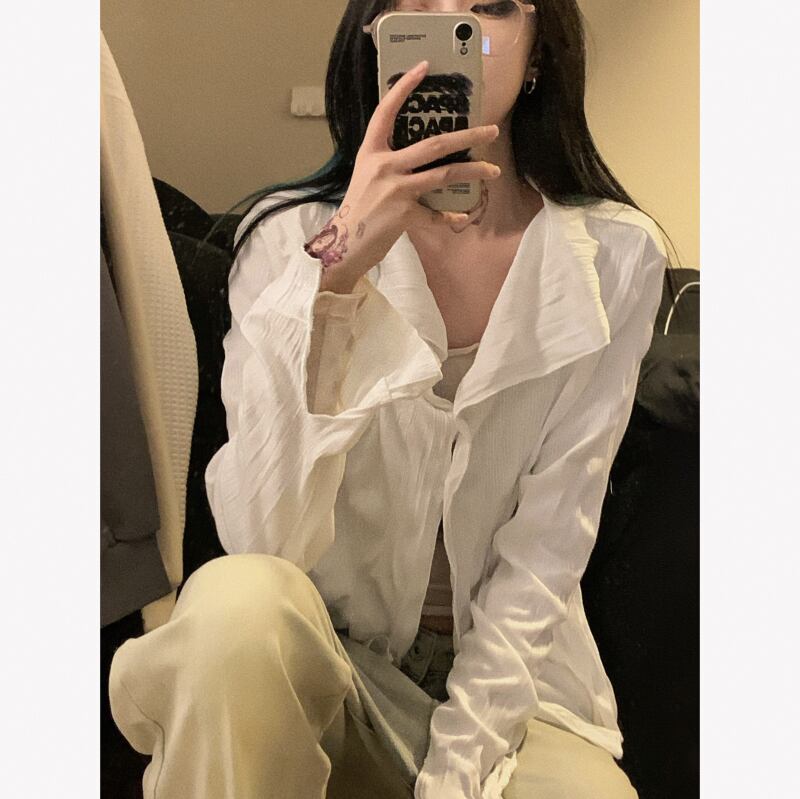 夏服薄手ホワイトシャツトップス ロング 夏物 長袖 デーモン78846575185