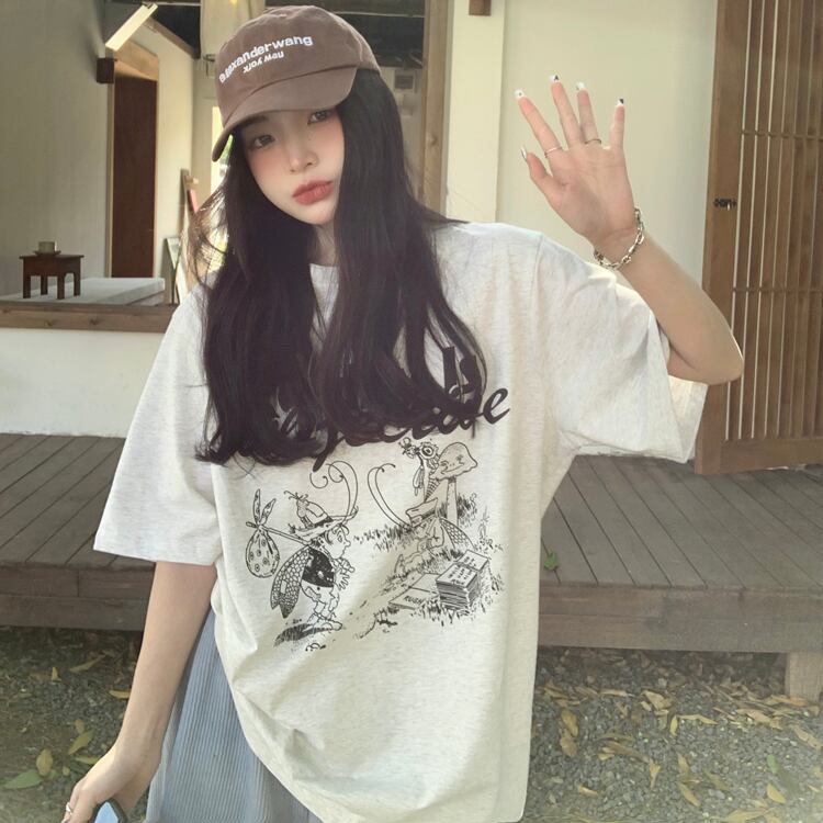 Tシャツシャツ 夏服韓国ファッションNEWスタンダードプリントルーズ レトロ 夏物 スタイル デーモン81156291417
