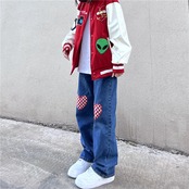 人気ジーンズ 秋物ウィンターハイウェストウェストルーズ薄手ワイドレッグパンツ オータム 冬物 ワイドパンツ ボーイズ ウエスト デーモン35762406983