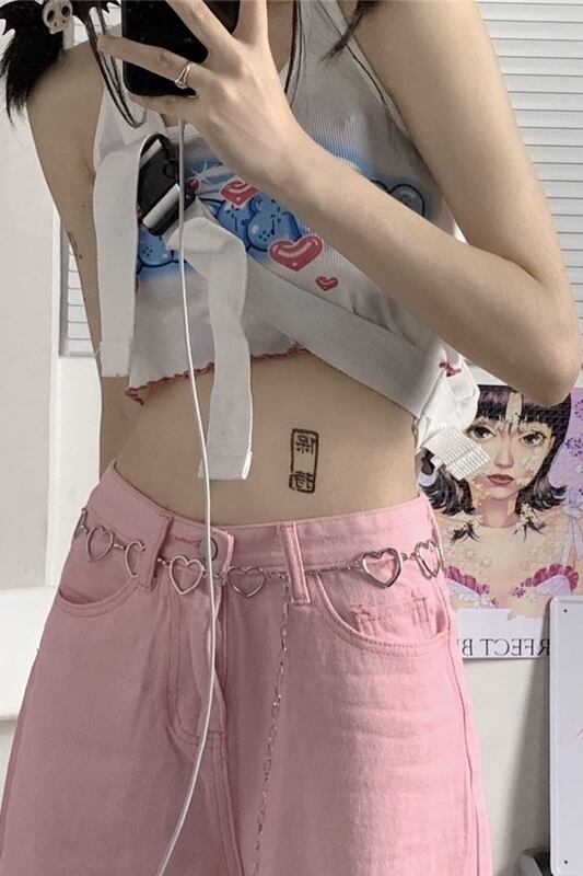 ジーンズ レディーススプリングハイウェストウェストルーズ薄手ワイドレッグパンツ ピンク ストリート 春物 ワイドパンツ ウエスト デーモン59291901412