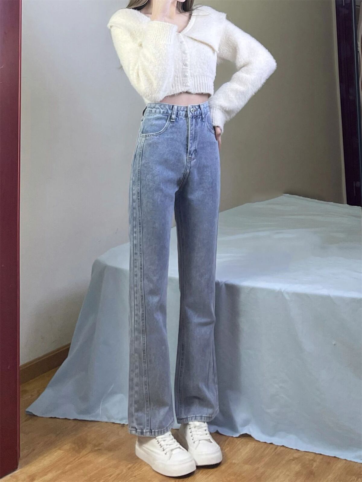 ジーンズ 夏服ハイウェストスリムパンツ レッド 夏物 ウエスト デーモン99522835579