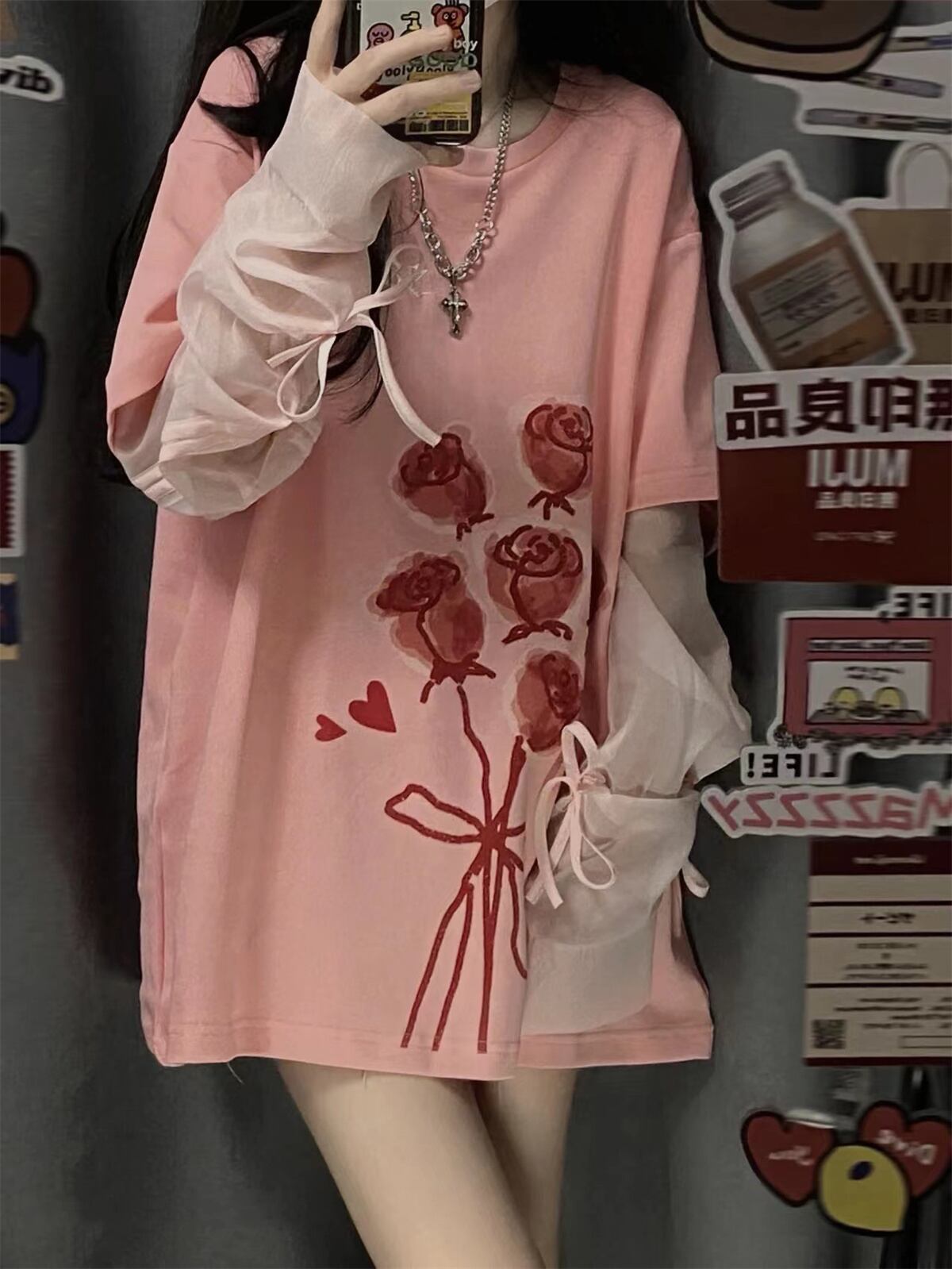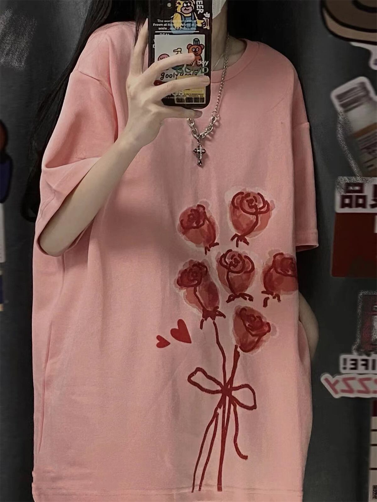 夏服Tシャツ韓国ファッションNEWスタンダードプリント柄ルーズトップス レトロ 夏物 スタイル デーモン56591519352