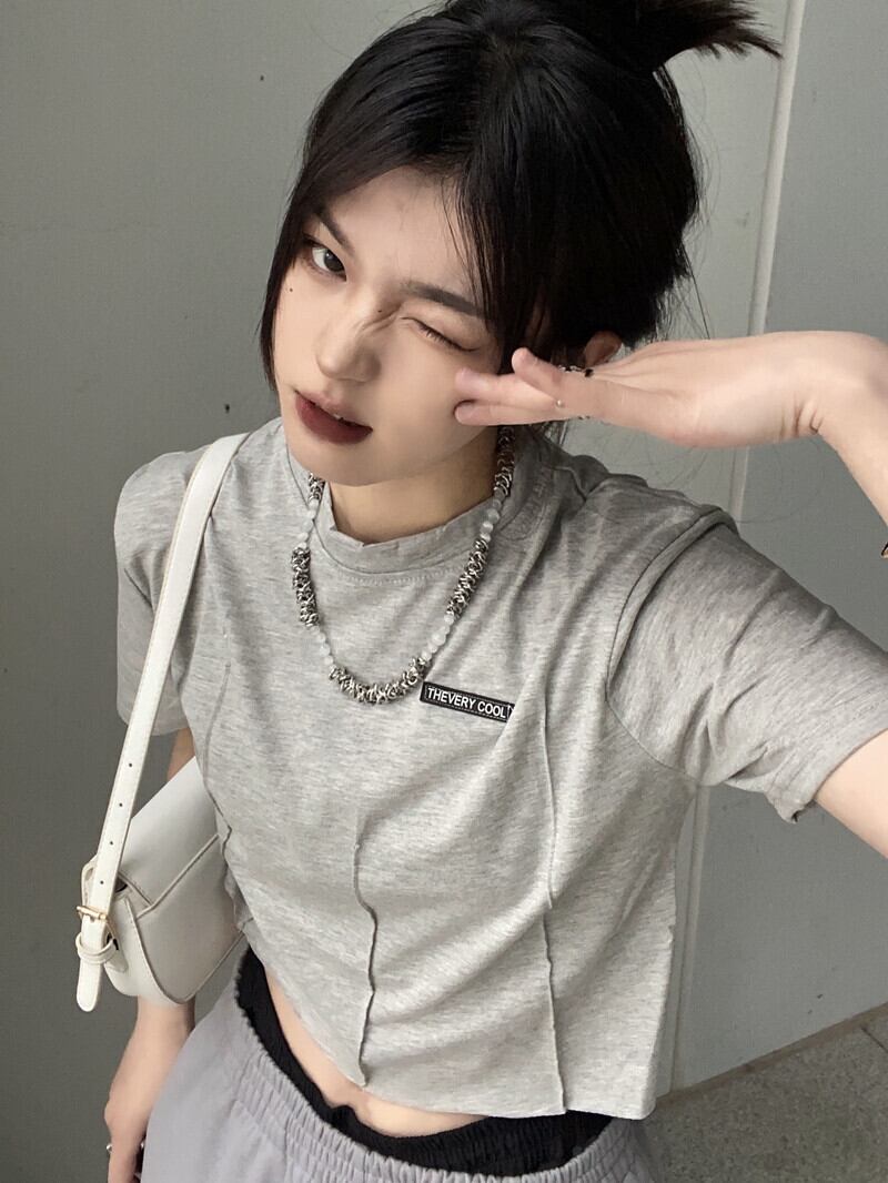 ショートTシャツ夏服スタンダードルーズトップス レトロ 夏物 デーモン88788465433