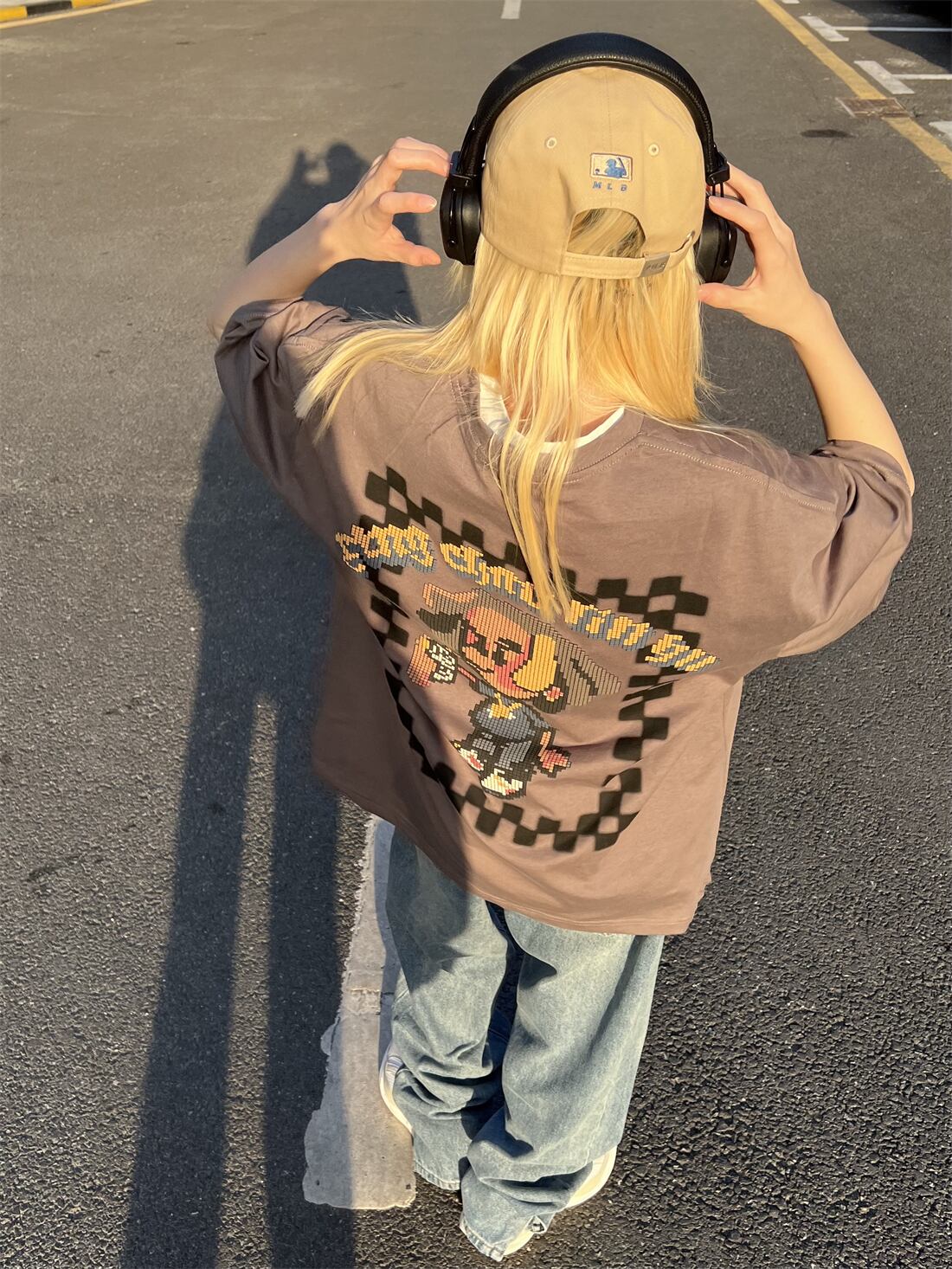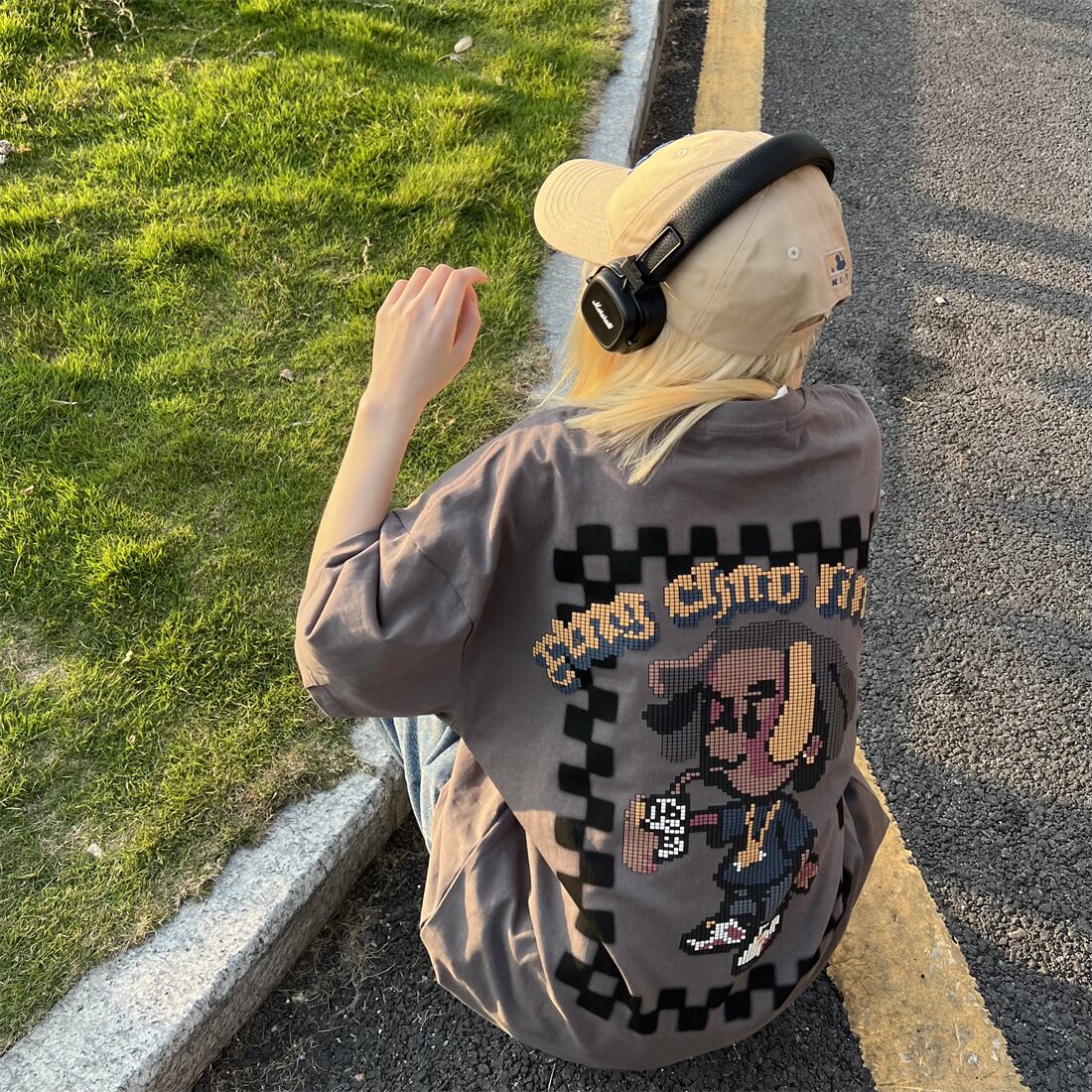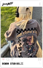 プリントTシャツ夏服スタンダードルーズトップス レトロ 夏物 デーモン8931061770