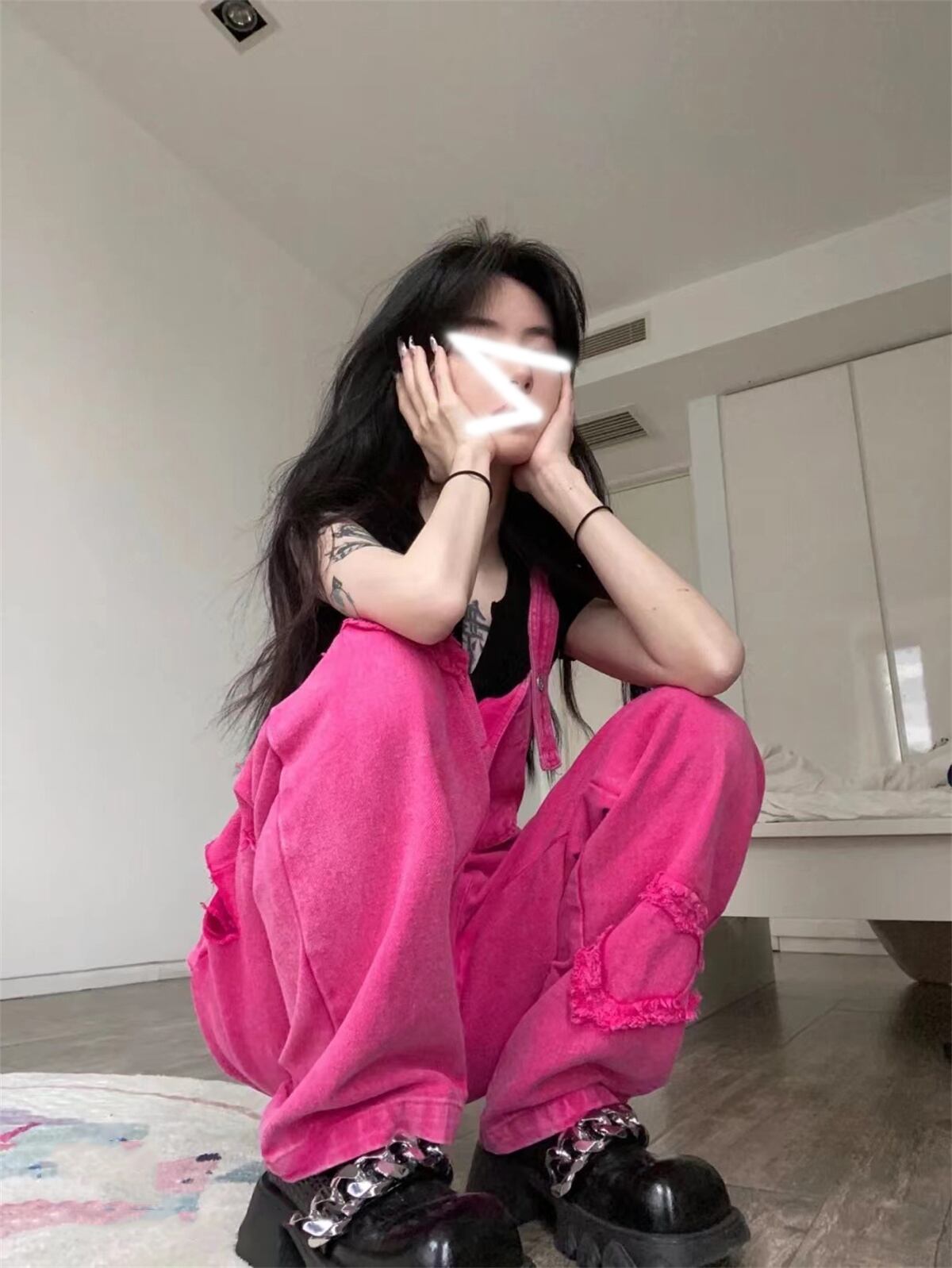 パンツ夏服スタンダードハイウェストルーズ薄手パンツ ピンク レトロ 夏物 ウエスト デーモン9824913648