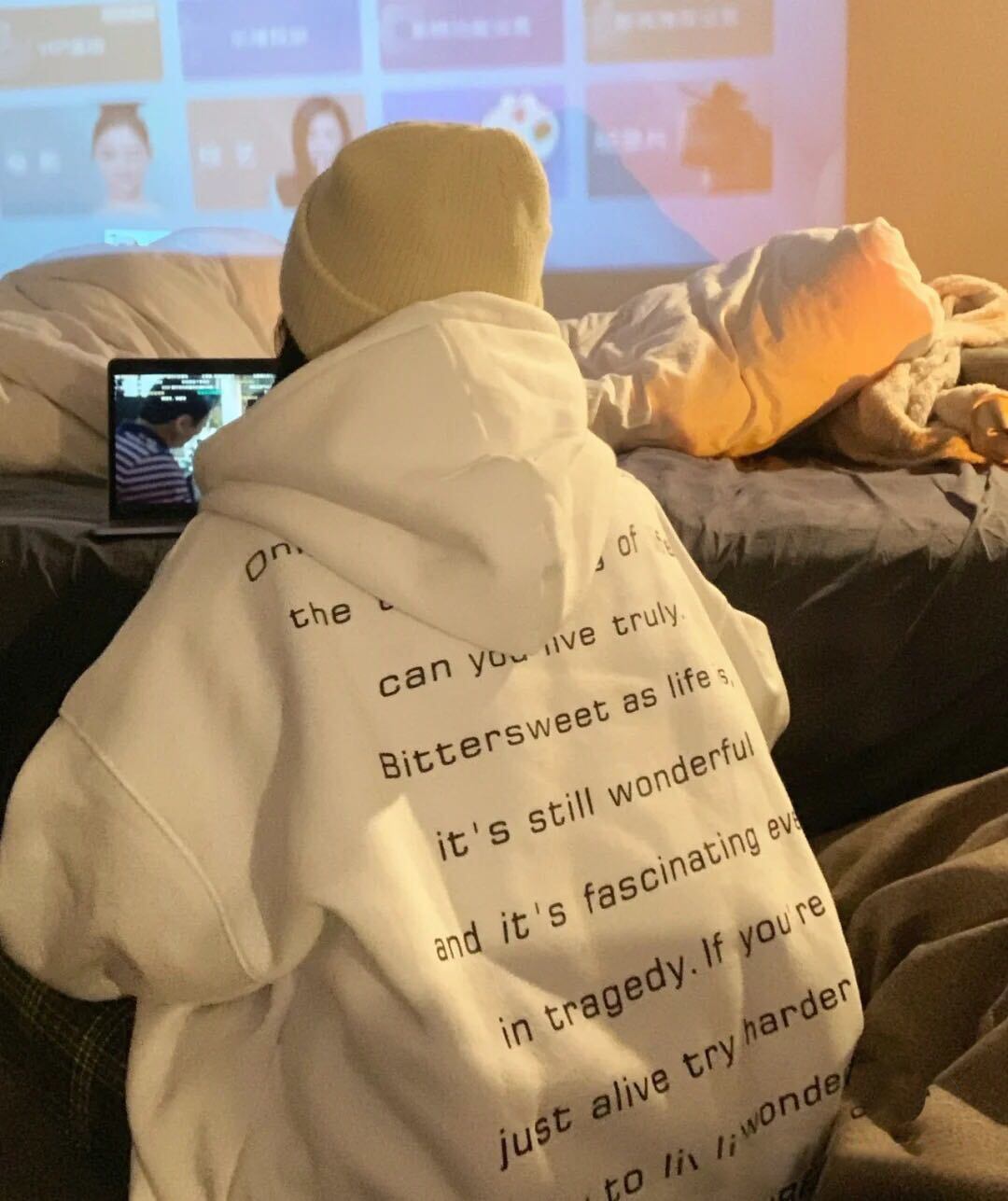 スプリング薄手フードセーター 韓国ファッションプリント柄ルーズトップス ロング 春物 スタイル 長袖 デーモン97362548590