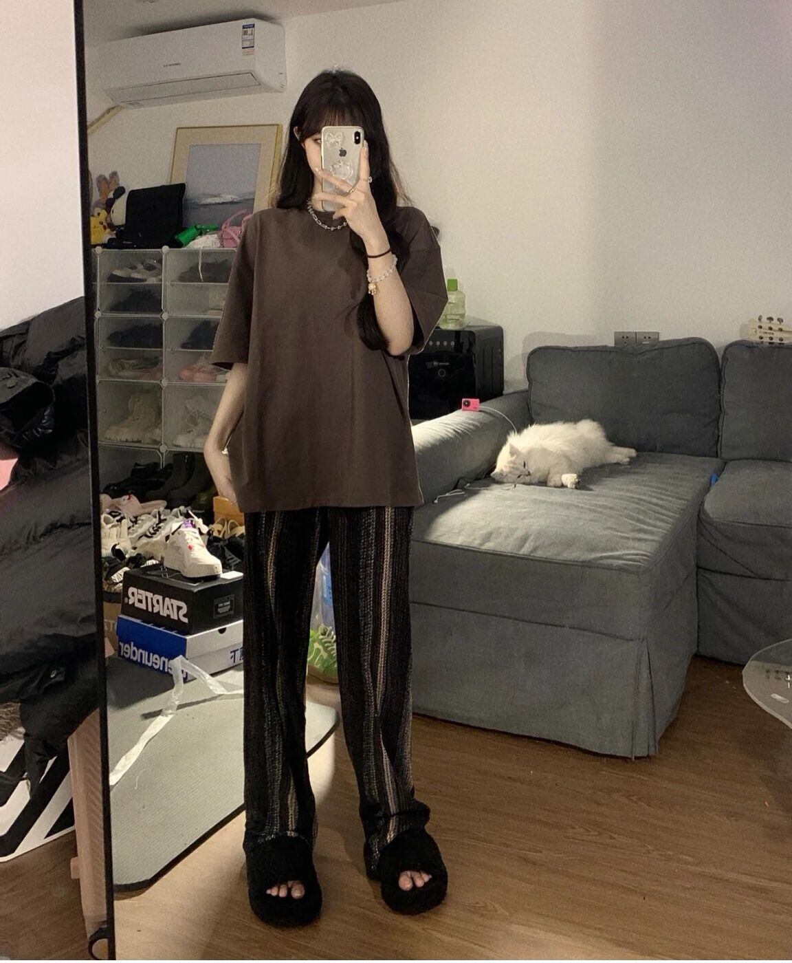 夏服Tシャツスタンダードプリーツカジュアルパンツ セット レトロ 夏物 デーモン96100238417