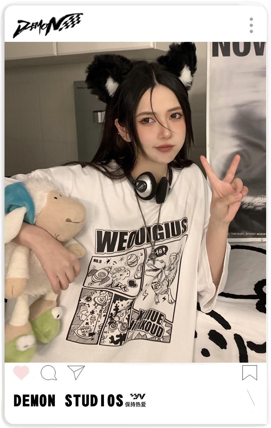 夏服Tシャツ韓国ファッションNEWスタンダードプリント柄ルーズトップス レトロ 夏物 ボーイズ スタイル デーモン25266603401