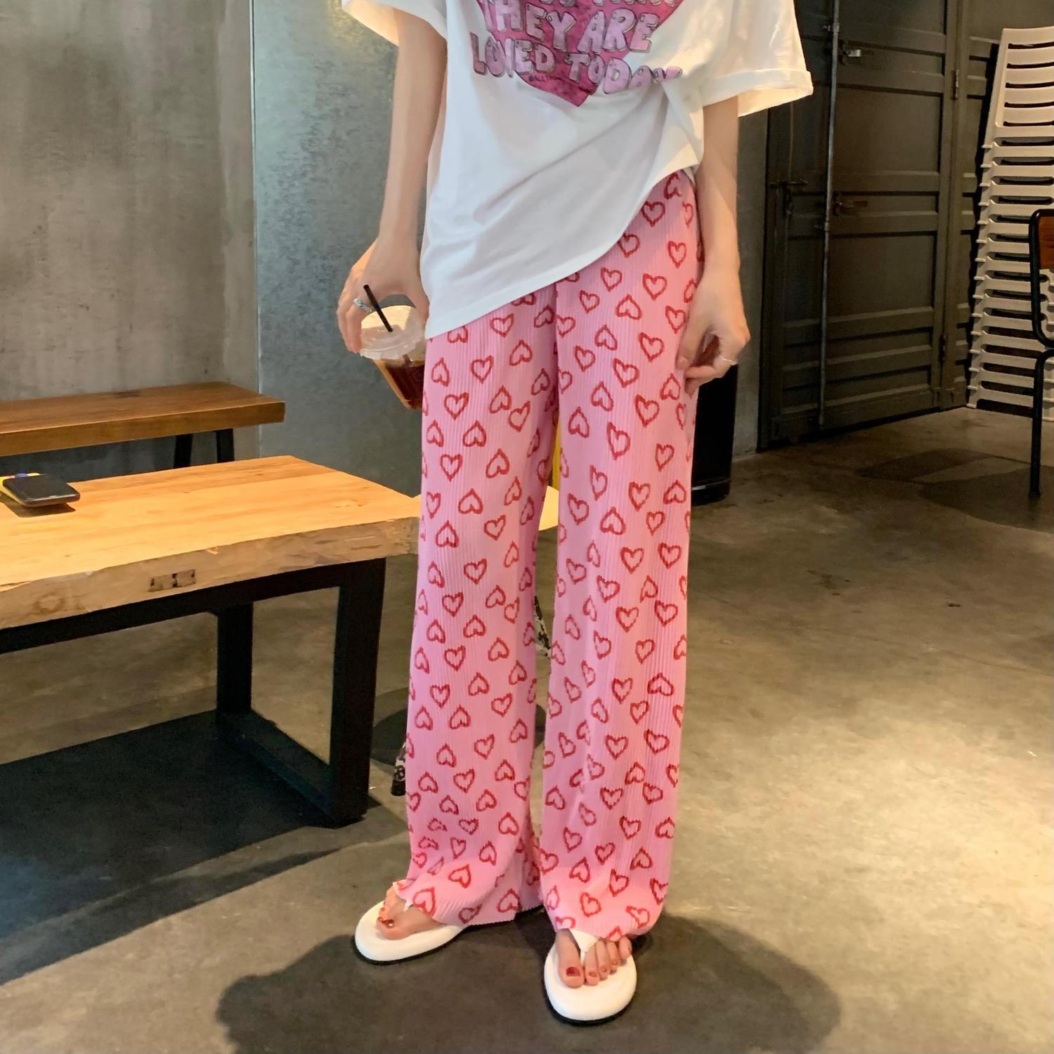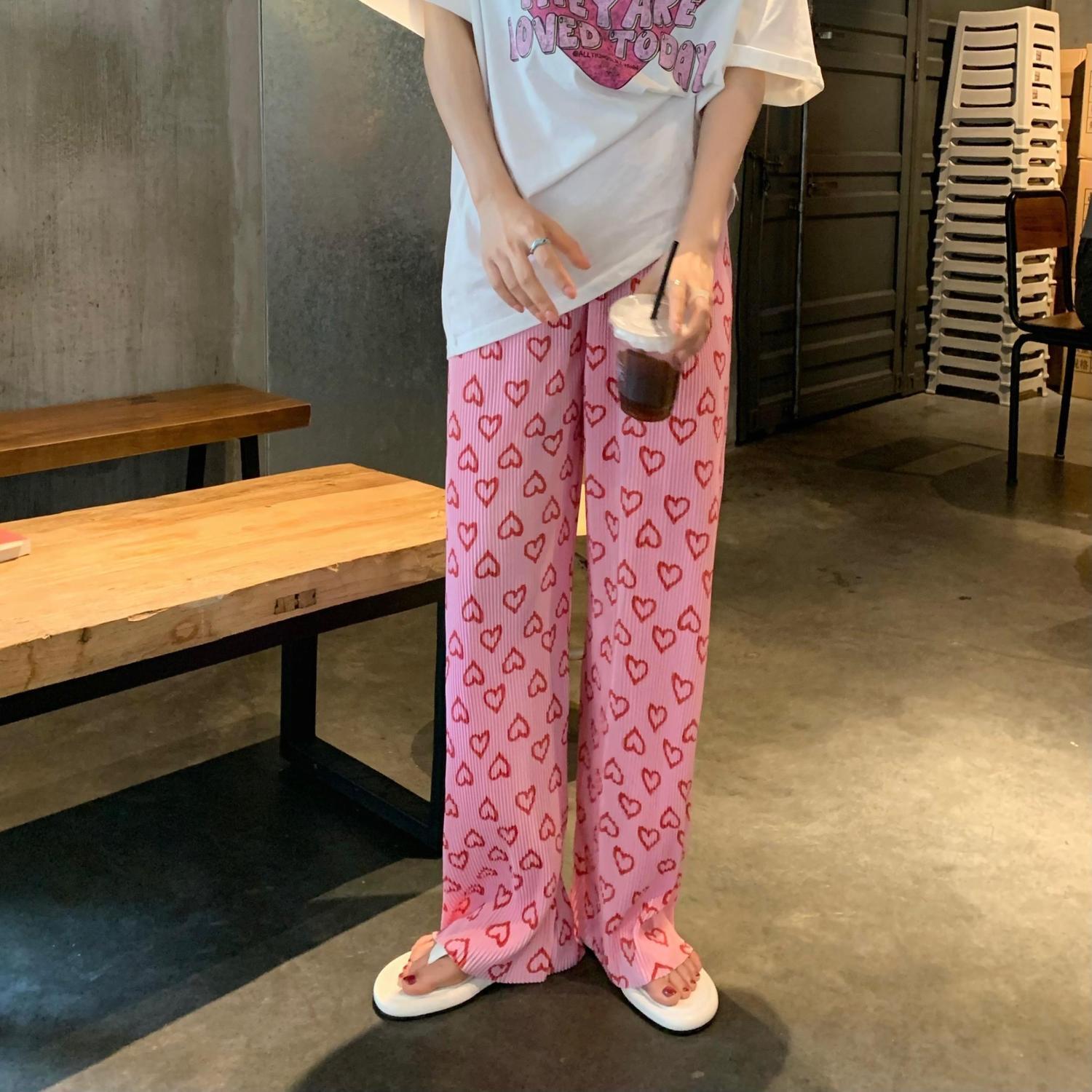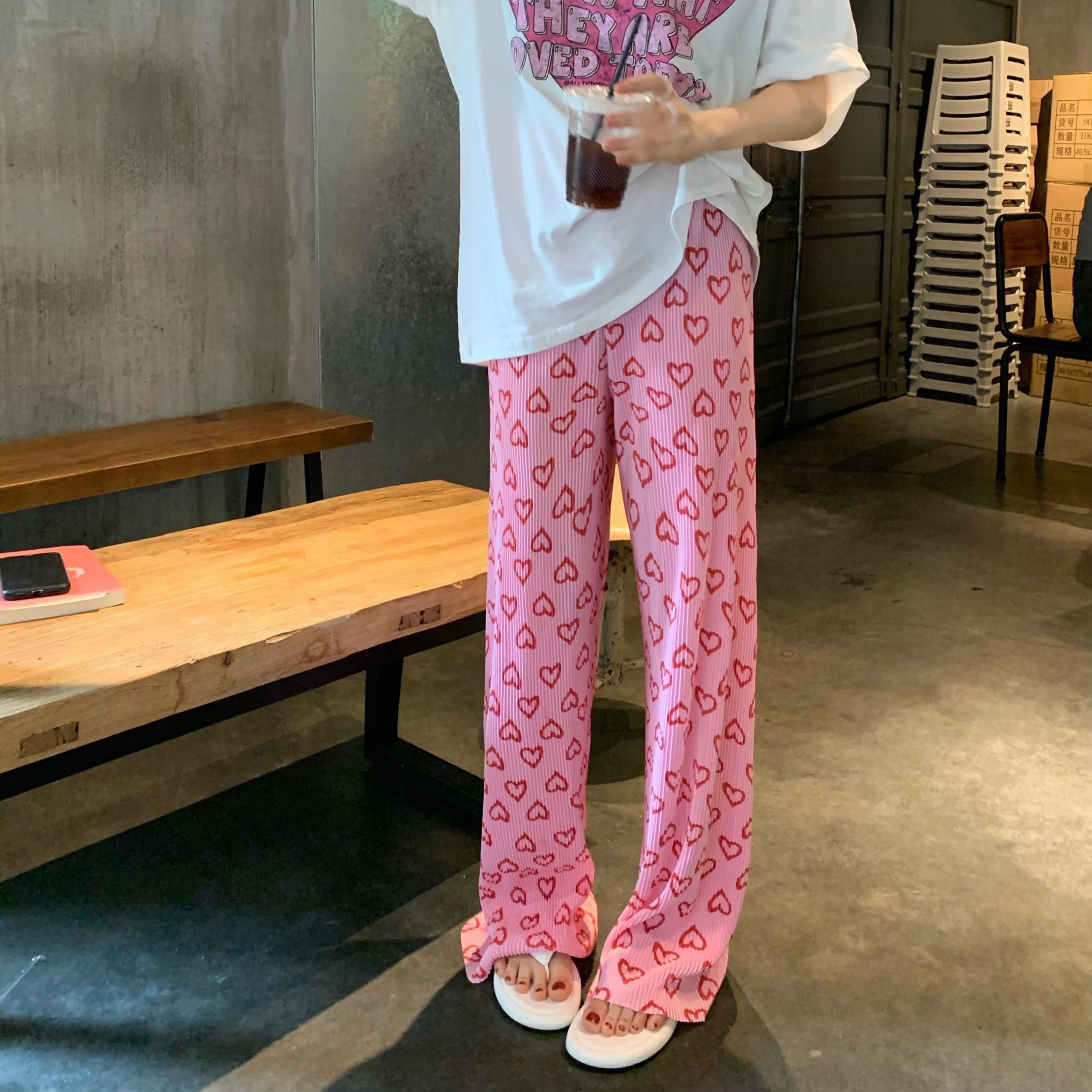 薄手カジュアルパンツ 夏服ハイウェストルーズ ピンク 夏物 ウエスト デーモン44415187299