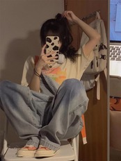 パンツスプリングスタンダードハイウェストルーズ薄手パンツ レトロ 春物 ウエスト デーモン40488156082