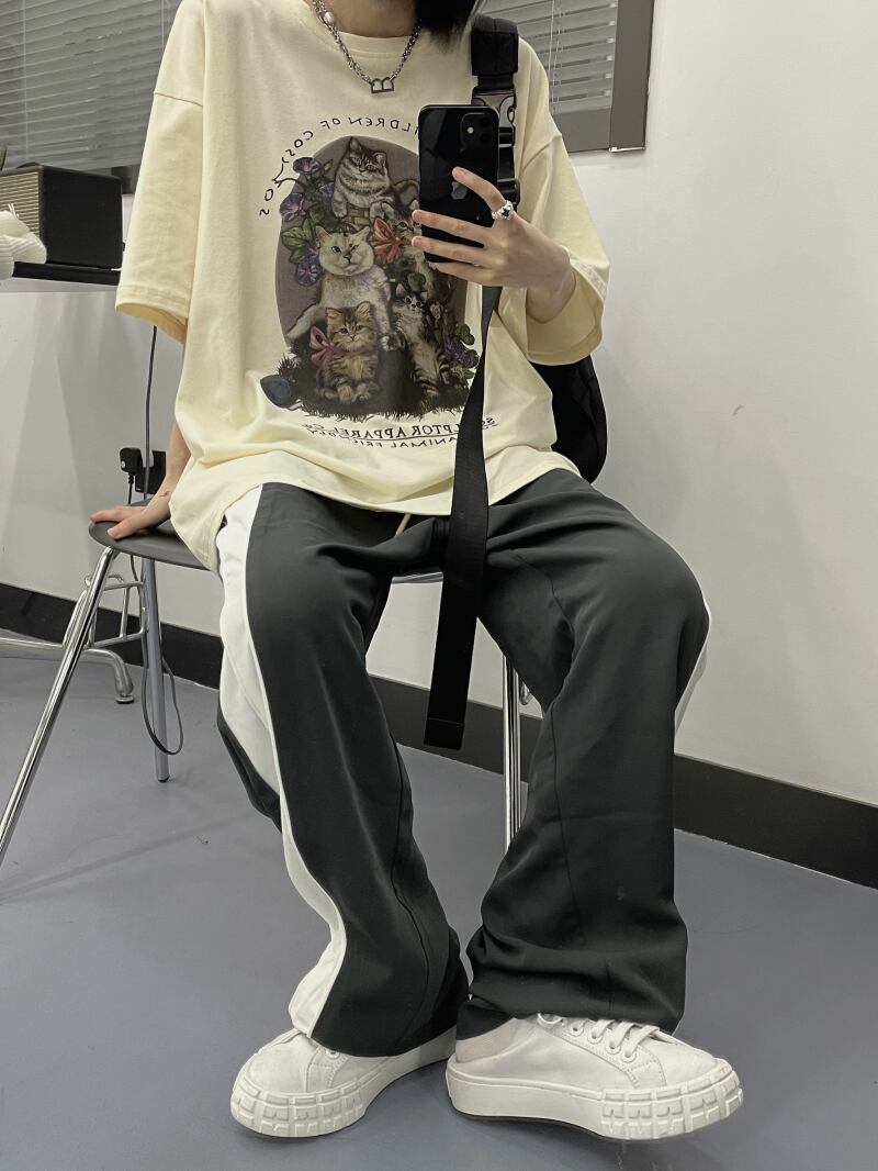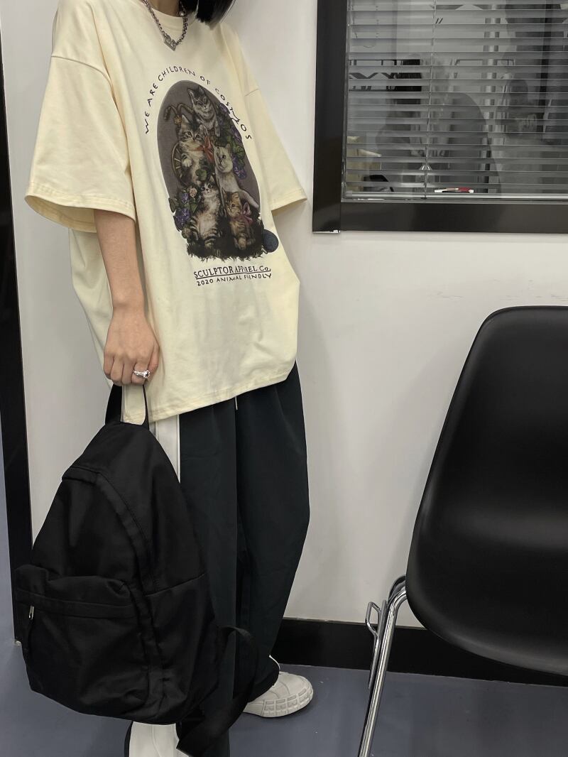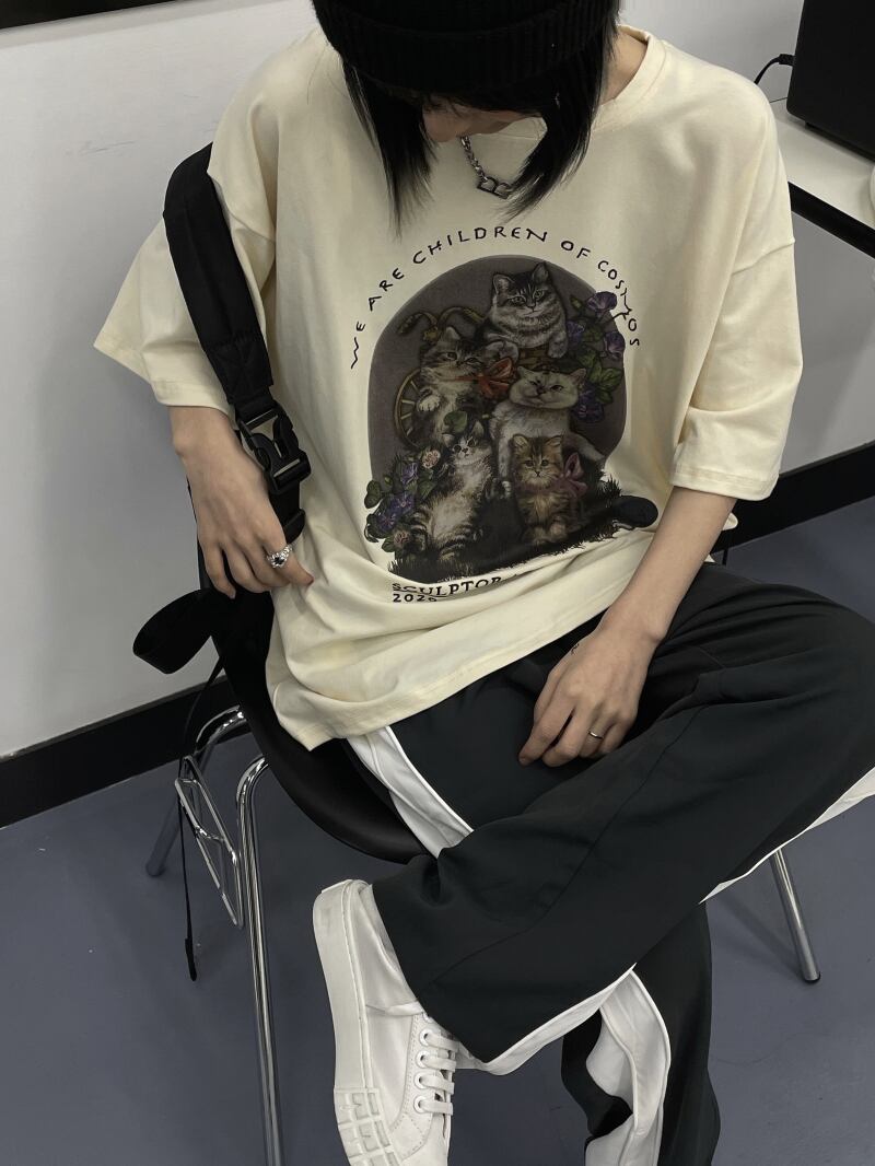 夏服Tシャツ韓国ファッションNEWスタンダードプリント柄ルーズトップス レトロ 夏物 スタイル デーモン69749929347