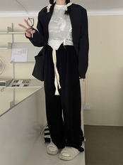 コーデュロイカジュアルパンツ スプリングギャザーハイウェストルーズ薄手 ストリート 春物 ウエスト デーモン67723439569