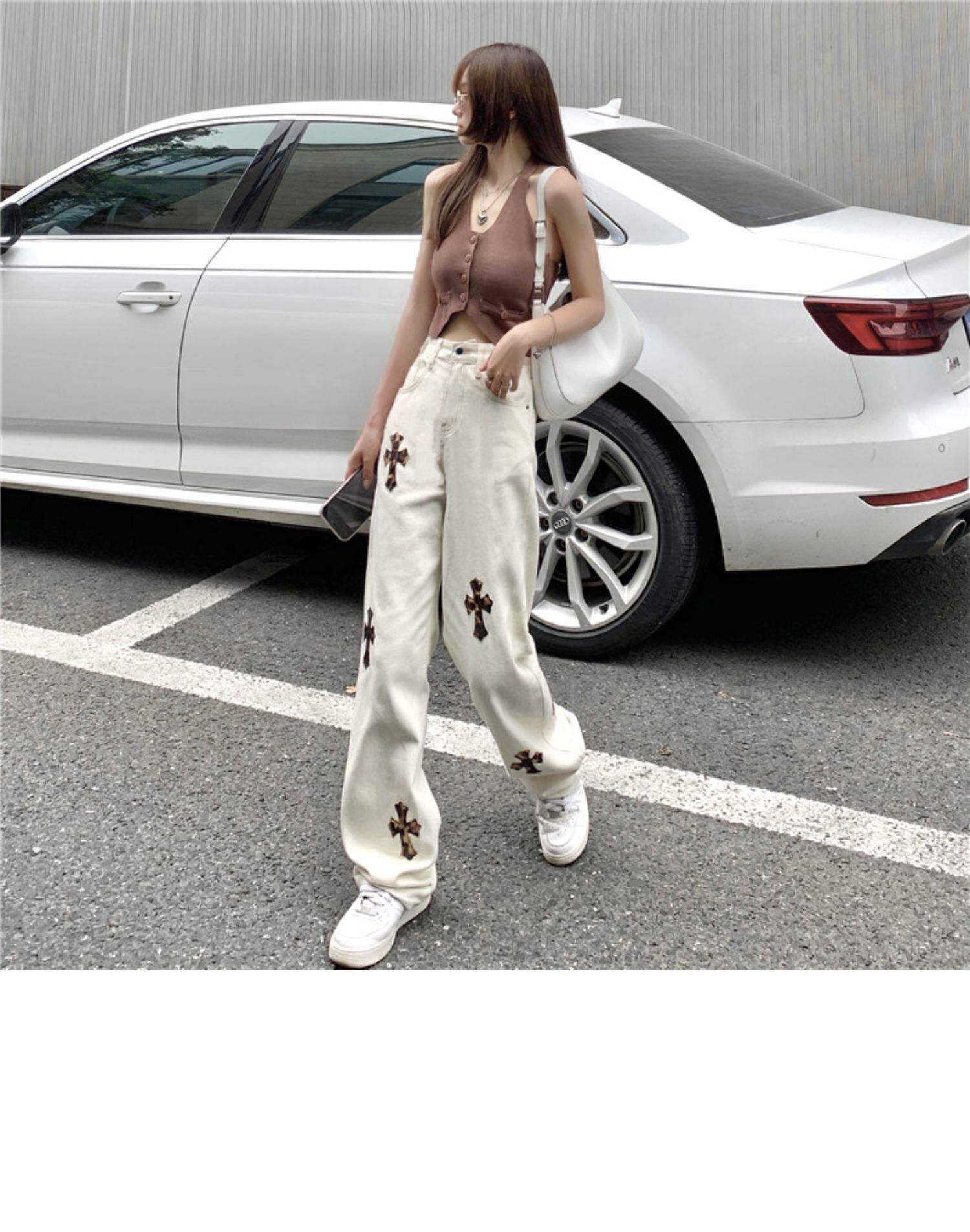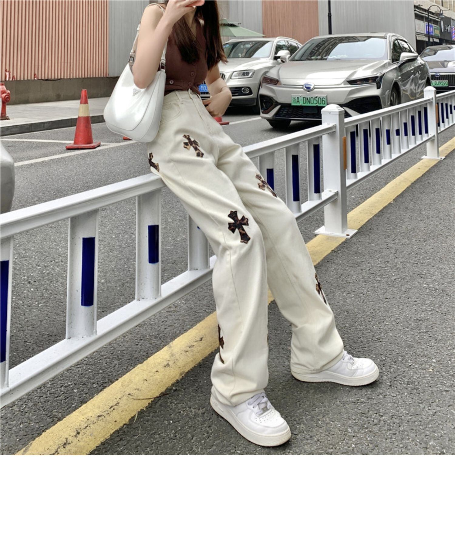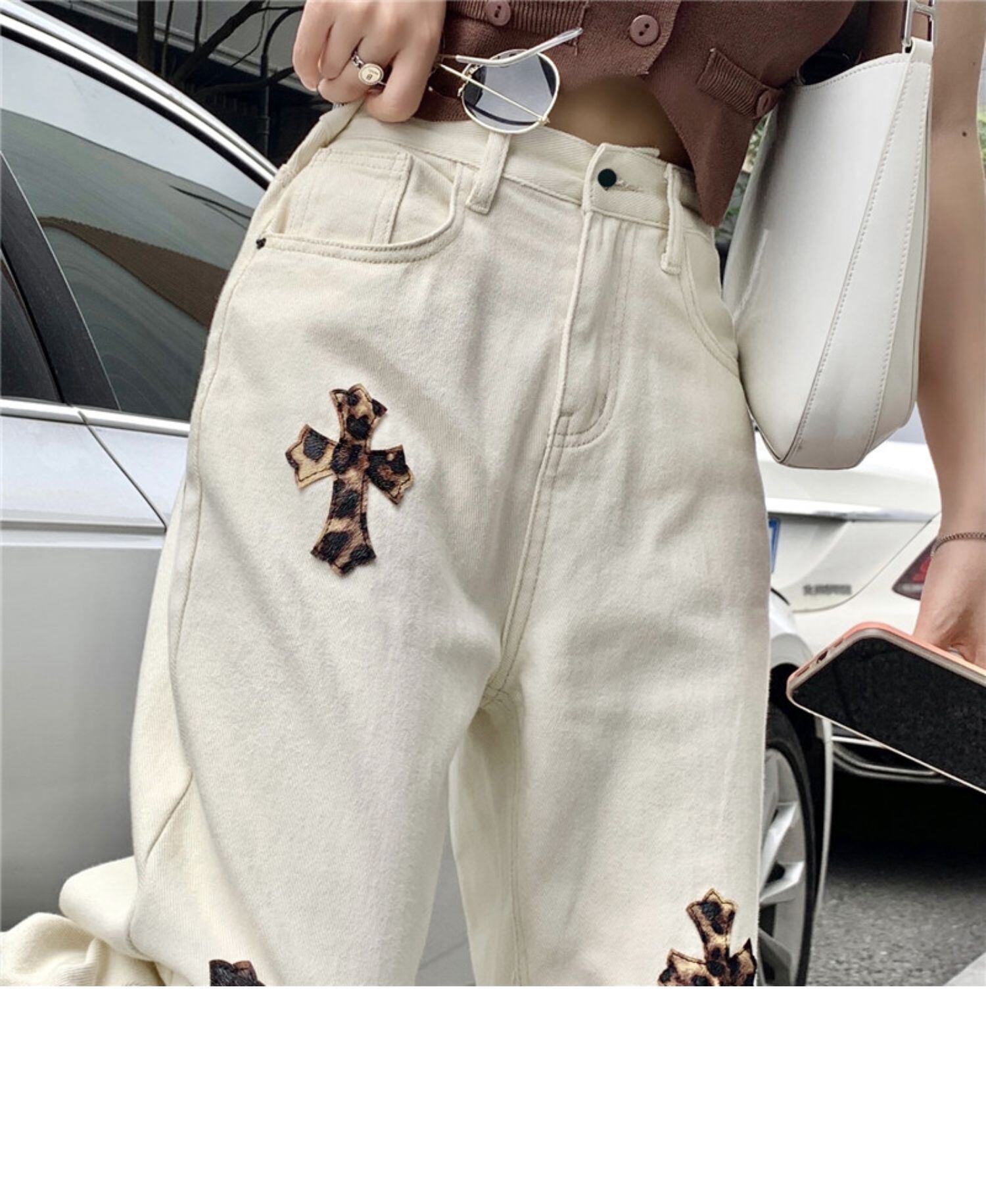 レオパードプリント柄クロスジーンズ スプリングハイウェストルーズ薄手パンツ ストリート 春物 ウエスト デーモン81899506536