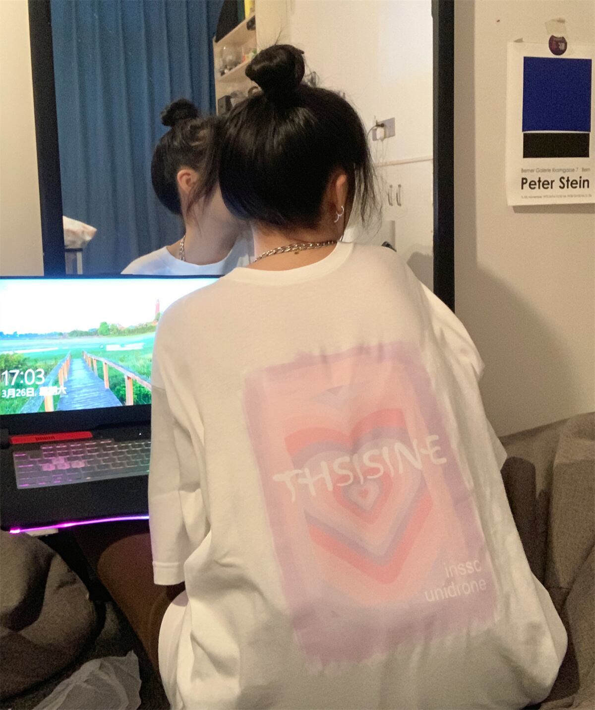 夏服ホワイトトップス 韓国ファッションカラープリント柄ルーズTシャツ 夏物 スタイル デーモン15748973986