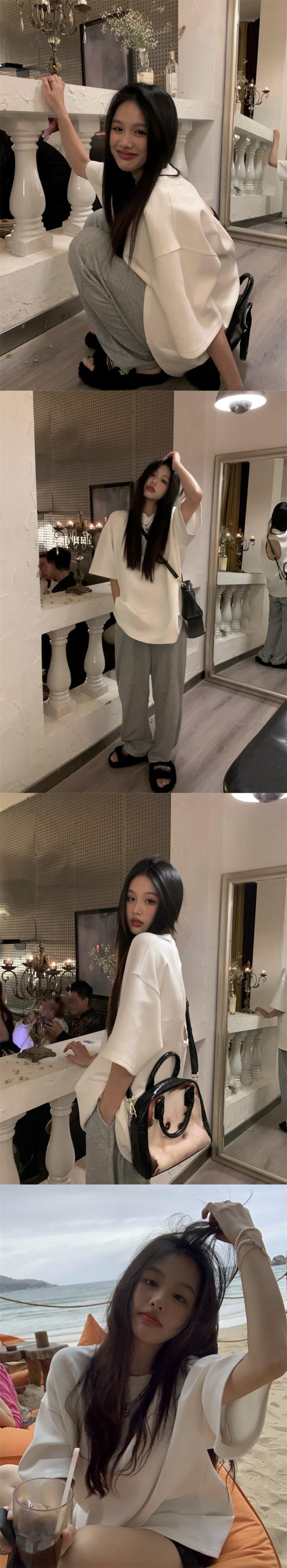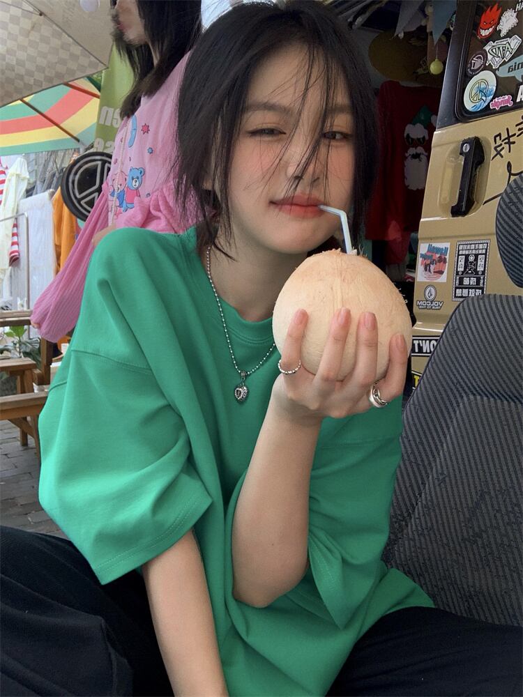 バックTシャツ夏服ソリッド カラールーズトップス 夏物 ソリッドカラー デーモン98578605222