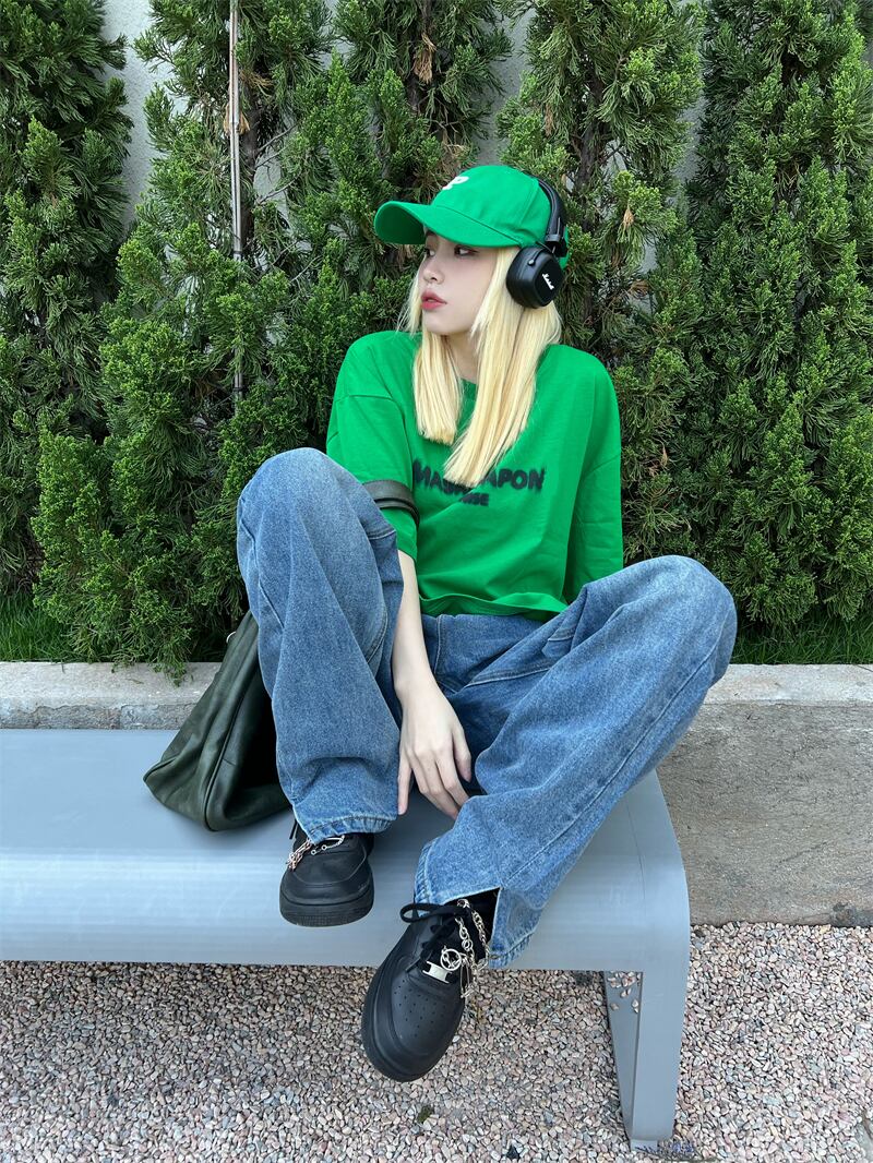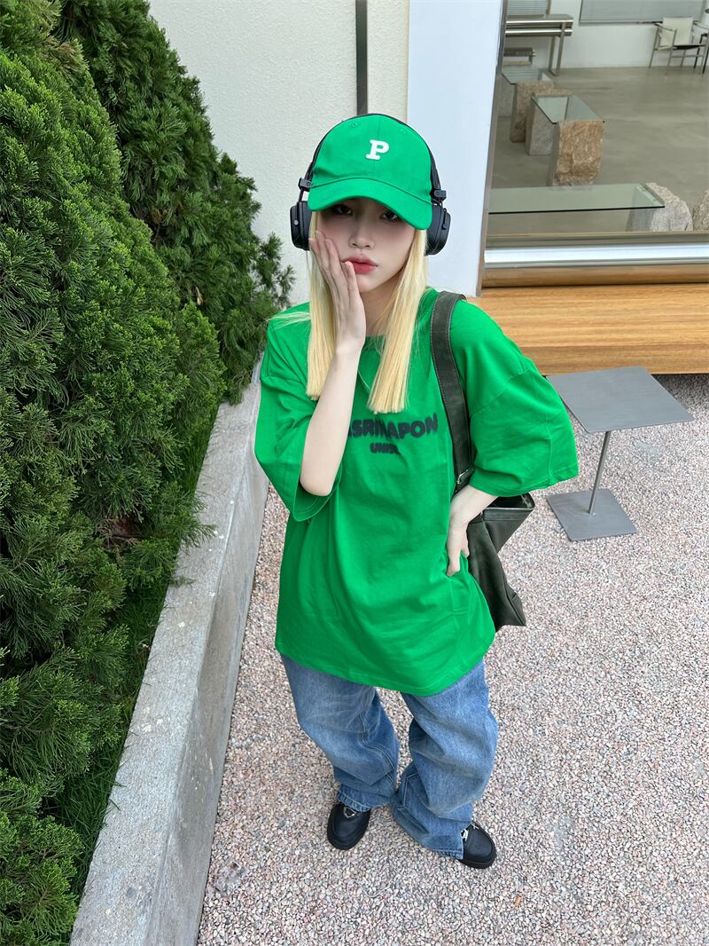 夏服Tシャツシャツ 韓国ファッショングリーンルーズプリント 夏物 ボーイズ スタイル デーモン88438727453