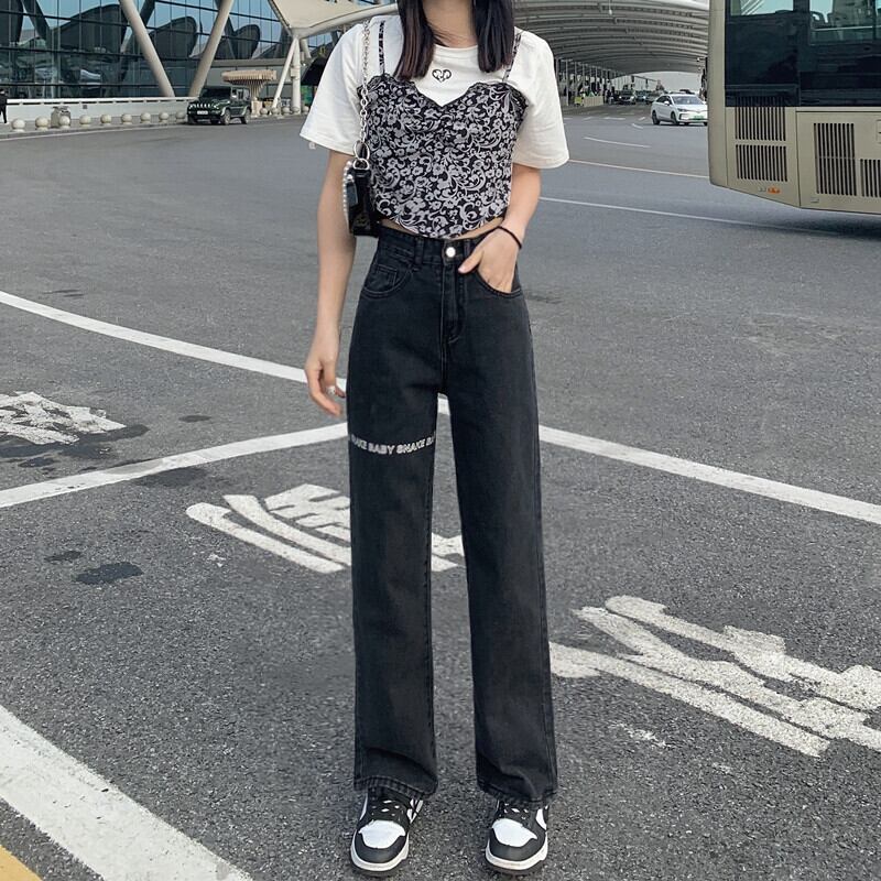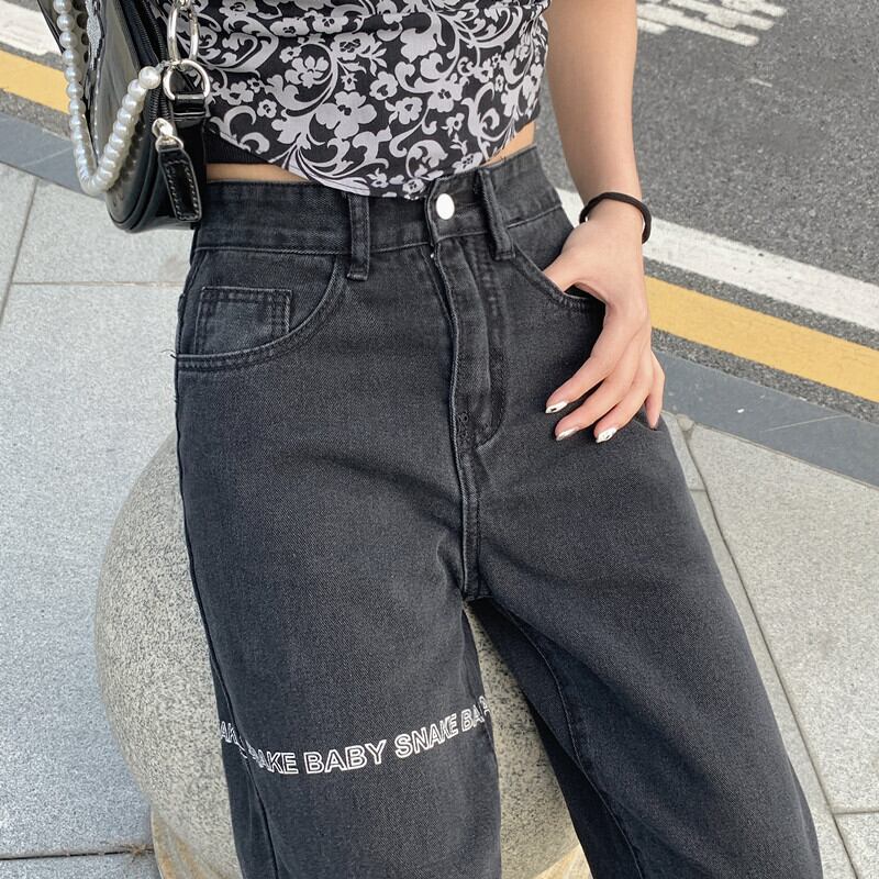 プリントジーンズ スプリングブラックハイウェストルーズ薄手パンツ 春物 ウエスト デーモン70225844519