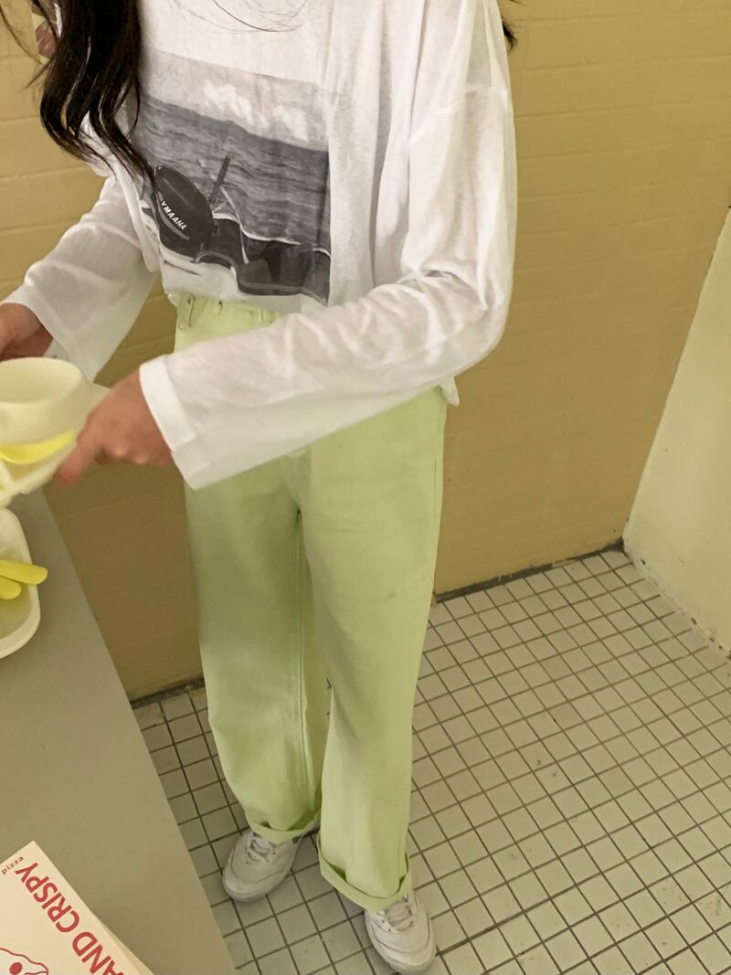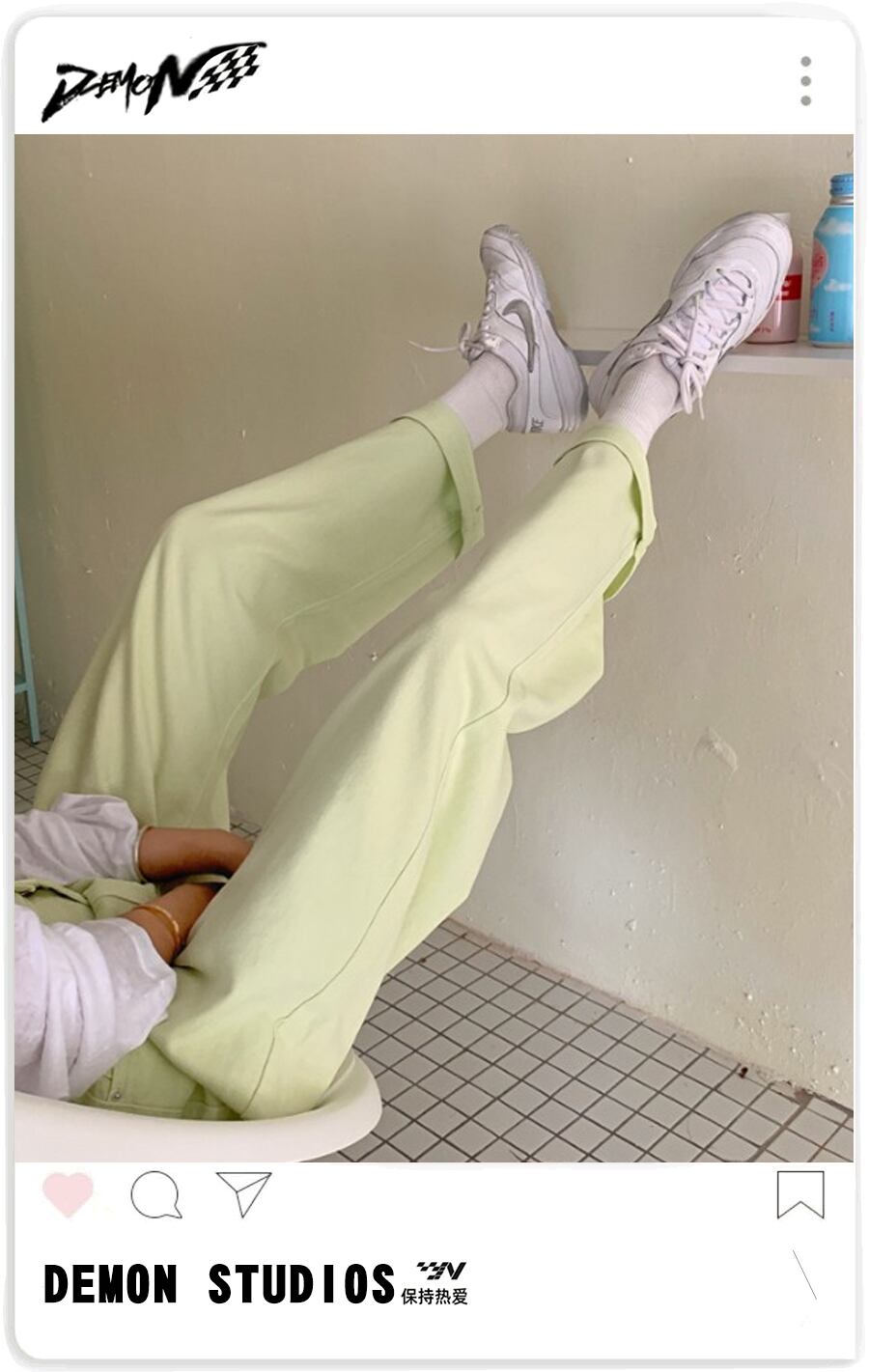 カラージーンズ 夏服ソリッド ハイウェストウェストルーズ薄手ワイドレッグパンツ ストリート 夏物 ワイドパンツ ソリッドカラー ウエスト デーモン47902293661