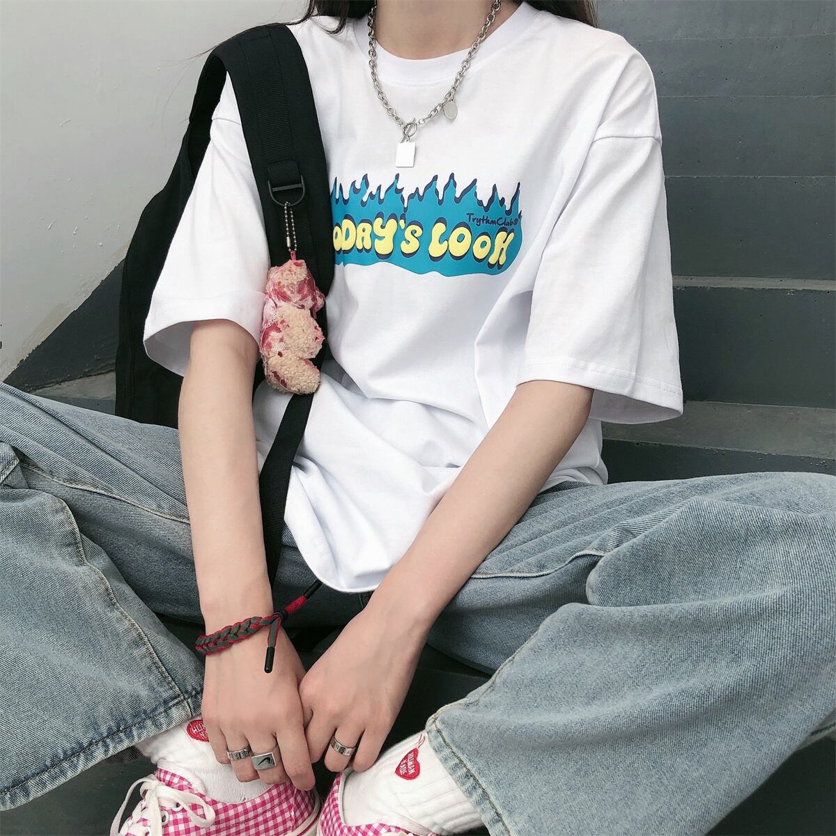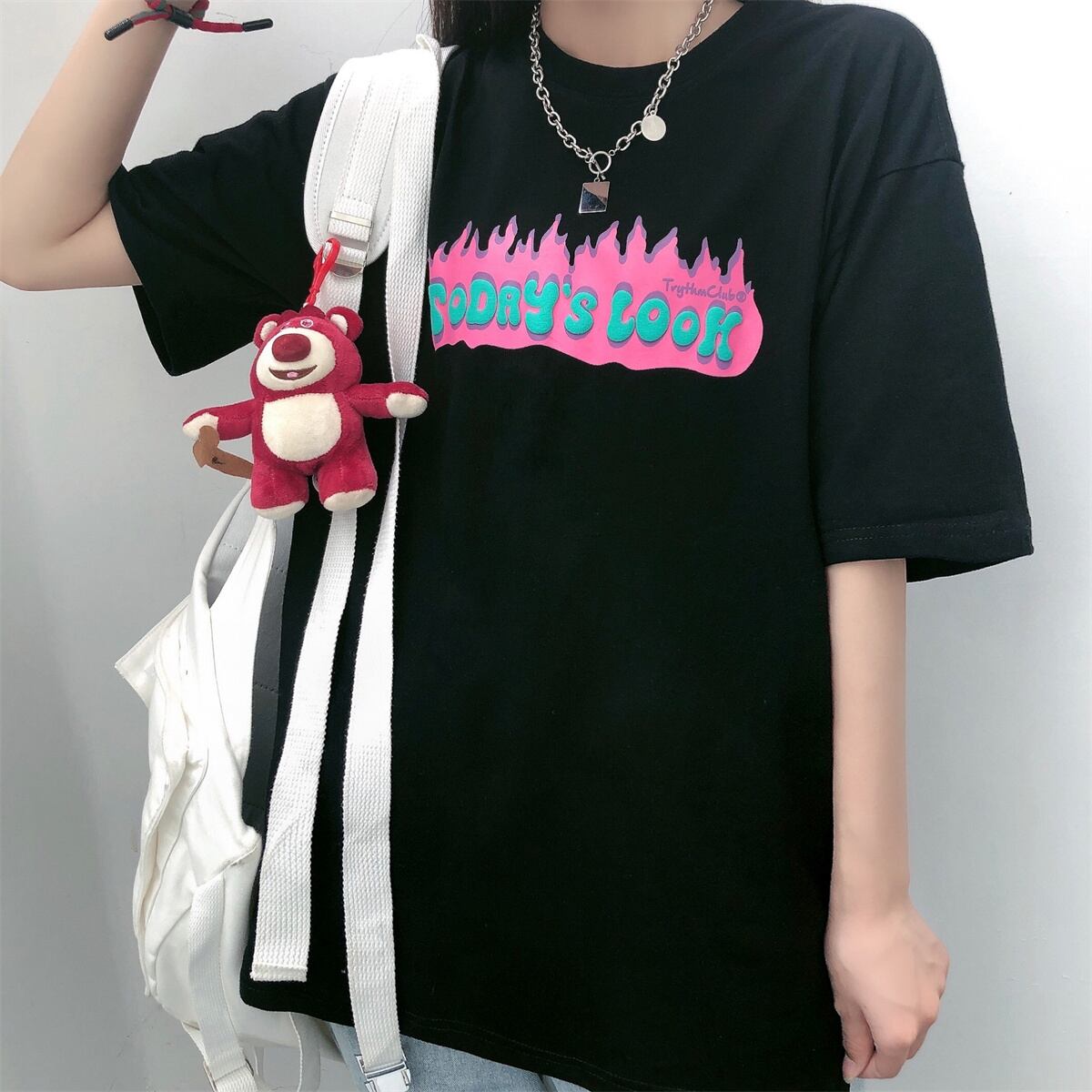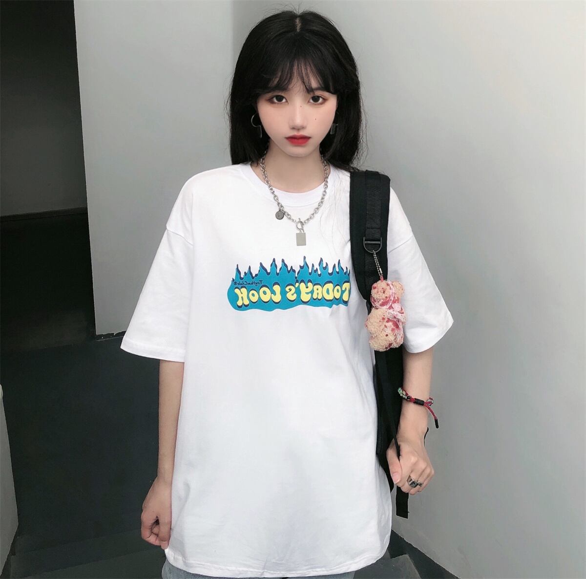 プリント柄Tシャツ夏服韓国ファッションルーズトップス 夏物 スタイル デーモン16312001956