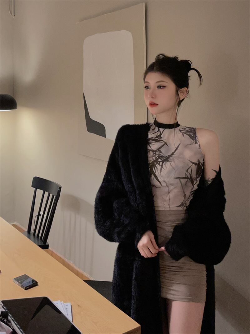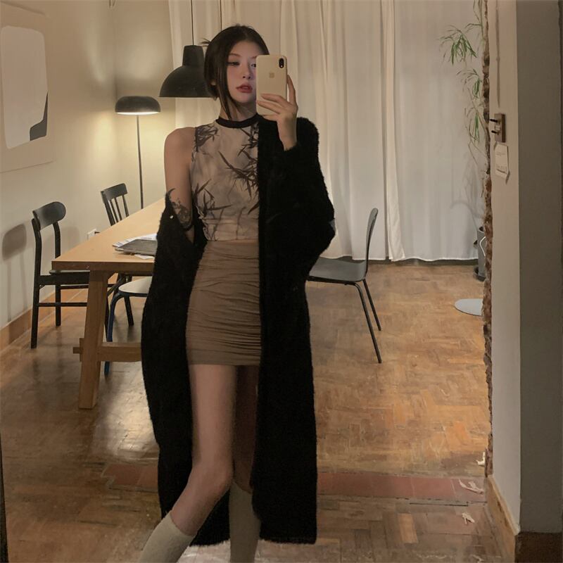 スタイルプリント夏服薄手ノースリーブトップス スタンダードスリムフィットメッシュ レトロ 夏物 デーモン94605011020