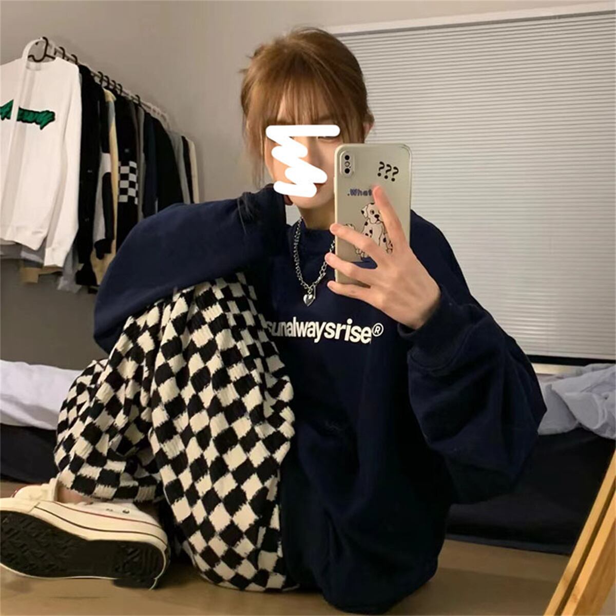 スプリングラウンドネックセーター 韓国ファッションプリントルーズトップス ロング 春物 Oネック スタイル 長袖 デーモン50387337952
