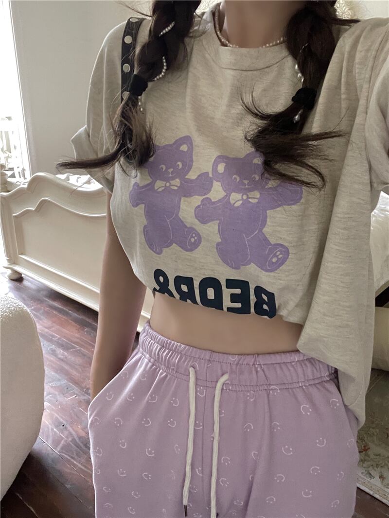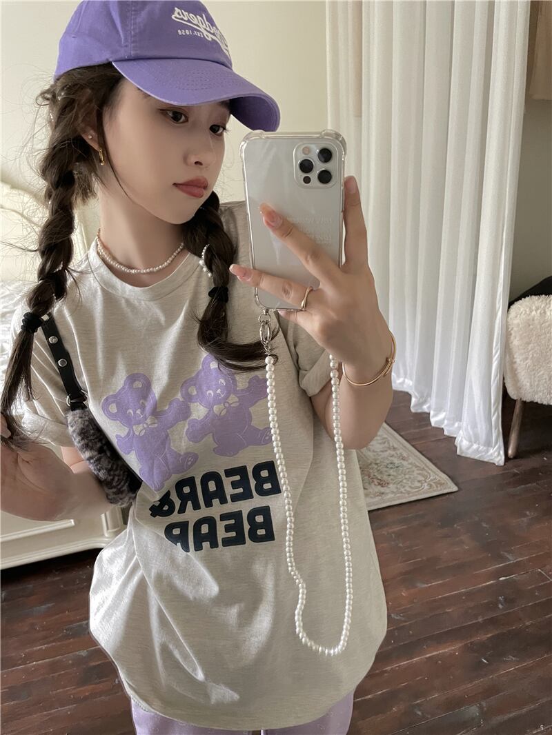 夏服スタンダードプリント柄トップス 韓国ファッションルーズTシャツ レトロ 夏物 スタイル デーモン90182923498