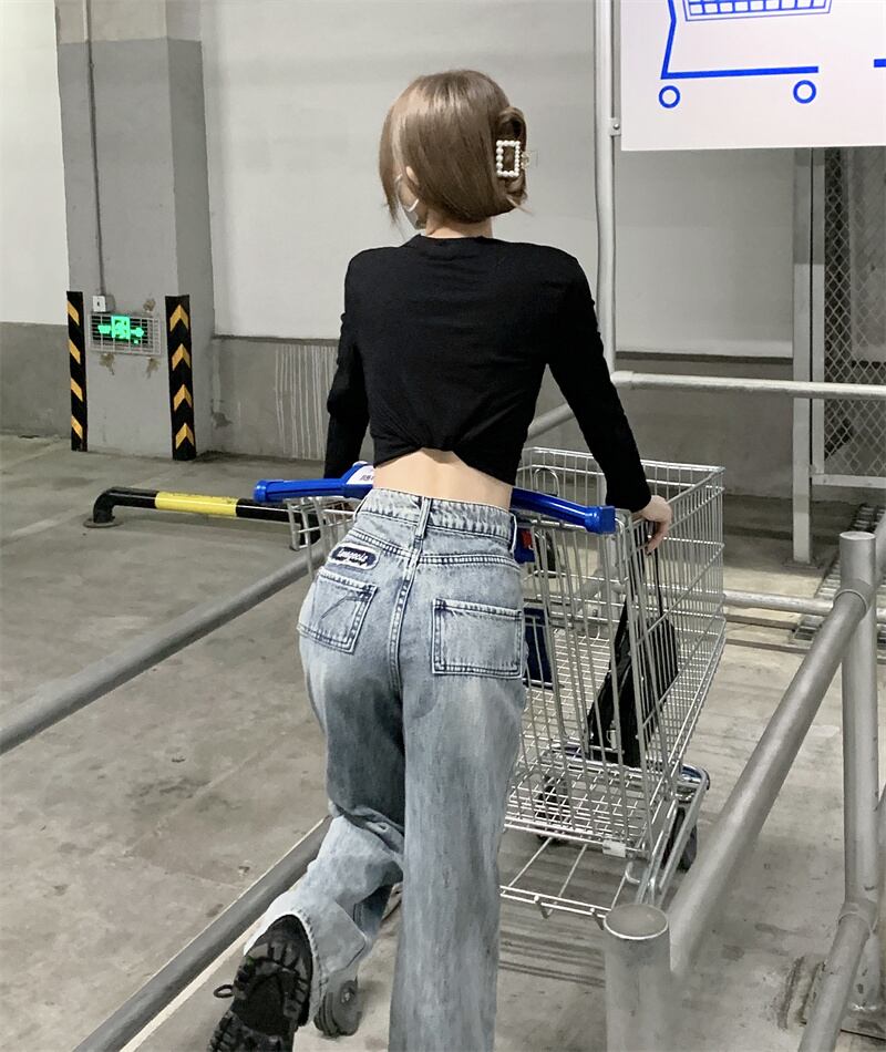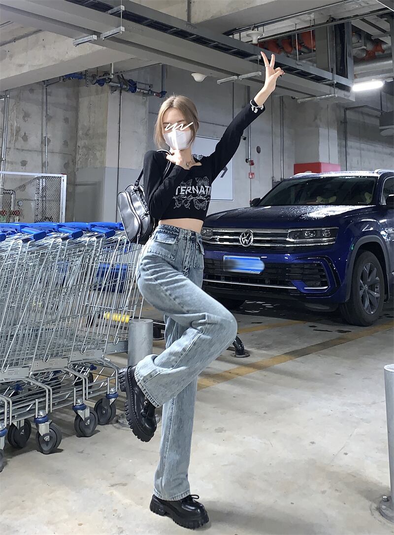 ジーンズ 夏服スタンダードハイウェストウェストルーズ薄手ワイドレッグパンツ レトロ 夏物 ワイドパンツ ウエスト デーモン93973809050