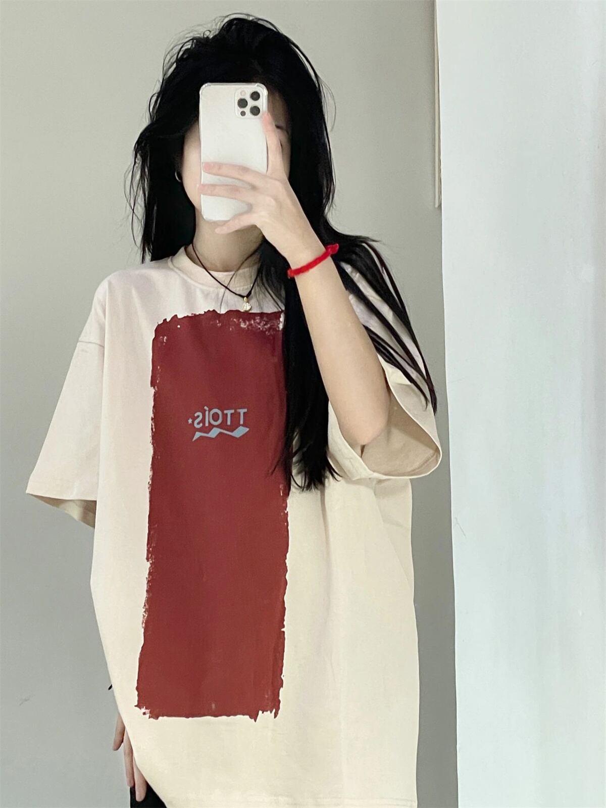 バックプリントトップス 夏服スタンダードルーズTシャツ レトロ 夏物 デーモン18023336869