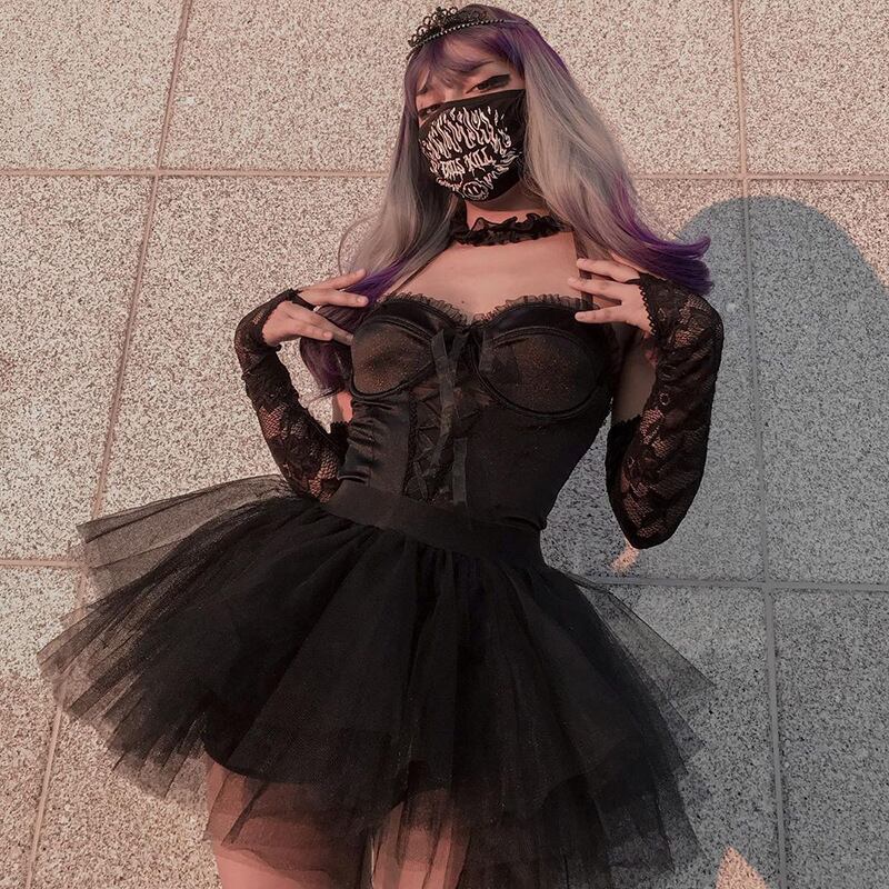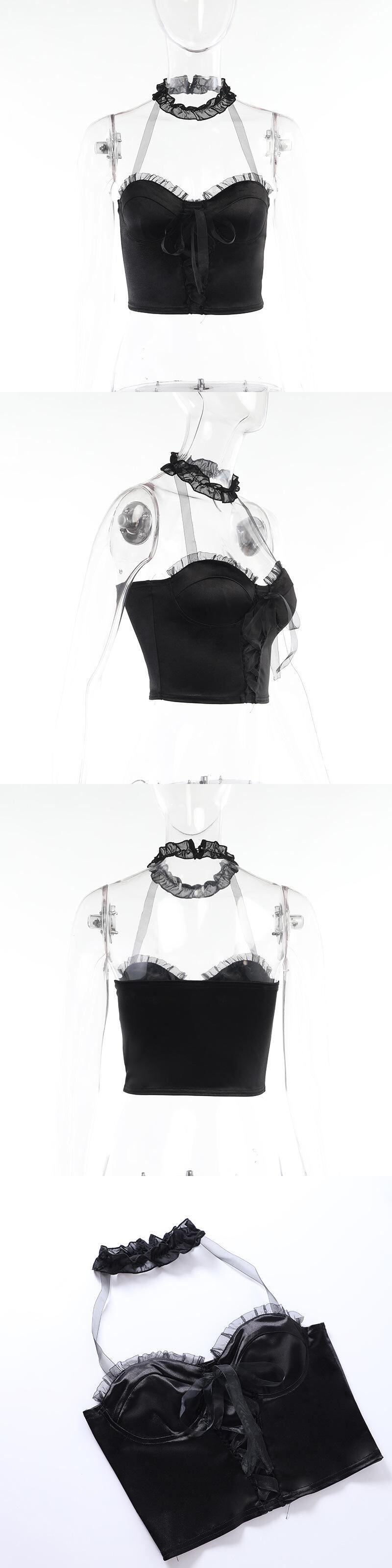 ダークブラックスタイルスプリング夏服ホルターメッシュストラップ 春物 夏物 ヨーロピアン YU35963397130